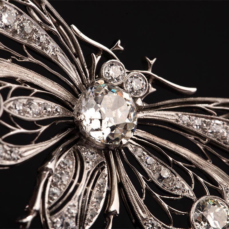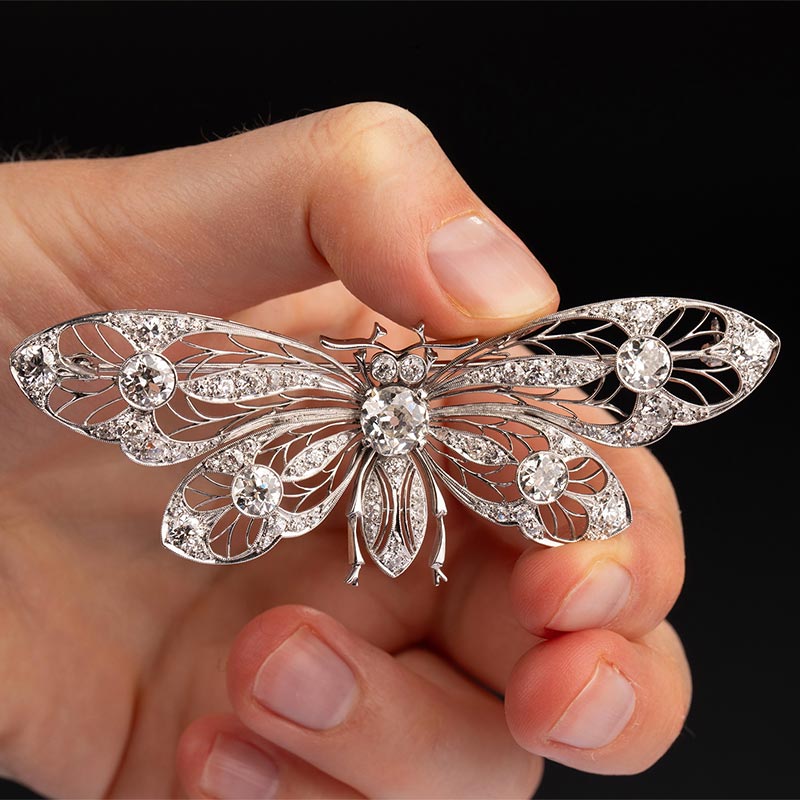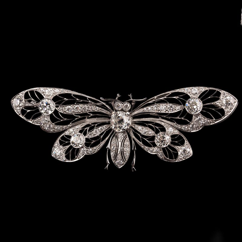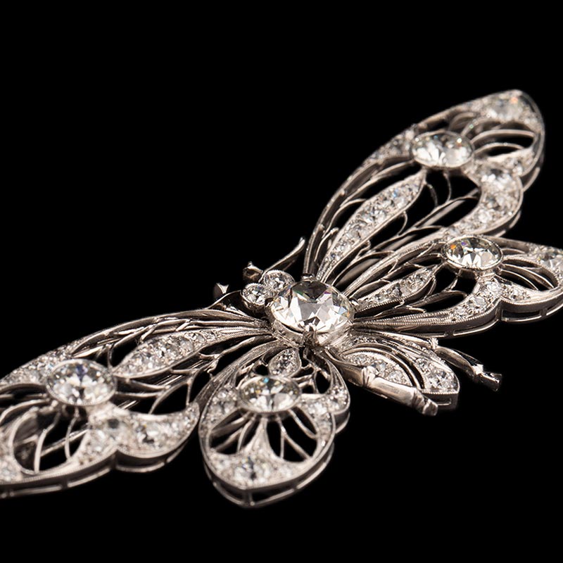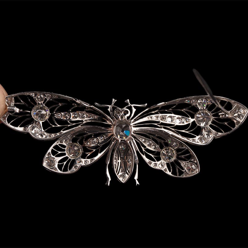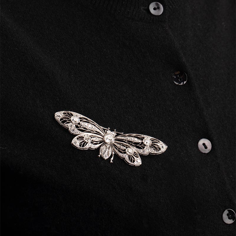 20世纪初欧洲出品新艺术风格蝴蝶造型铂金镂雕镶嵌钻石胸针
