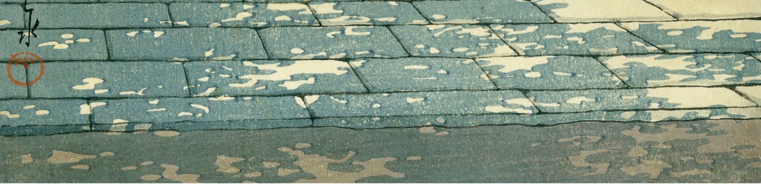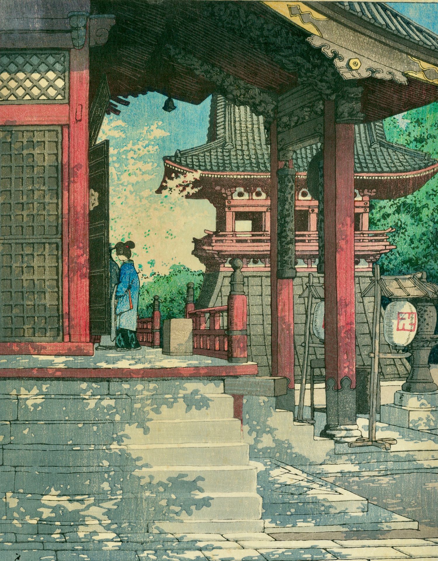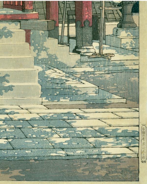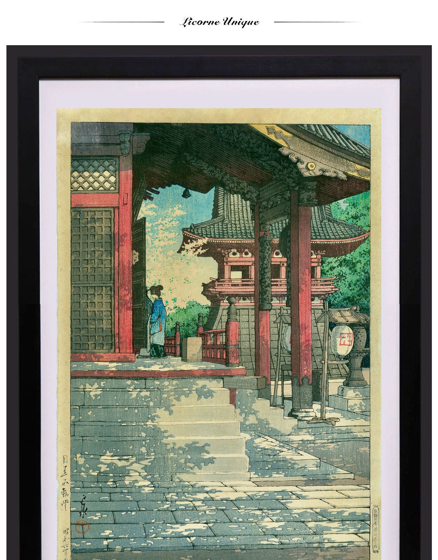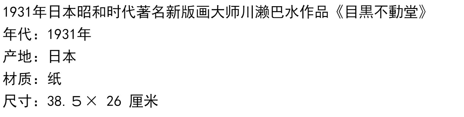 独角鹿西洋古董日本昭和时代新版画大师川濑巴水《目黒不動堂》