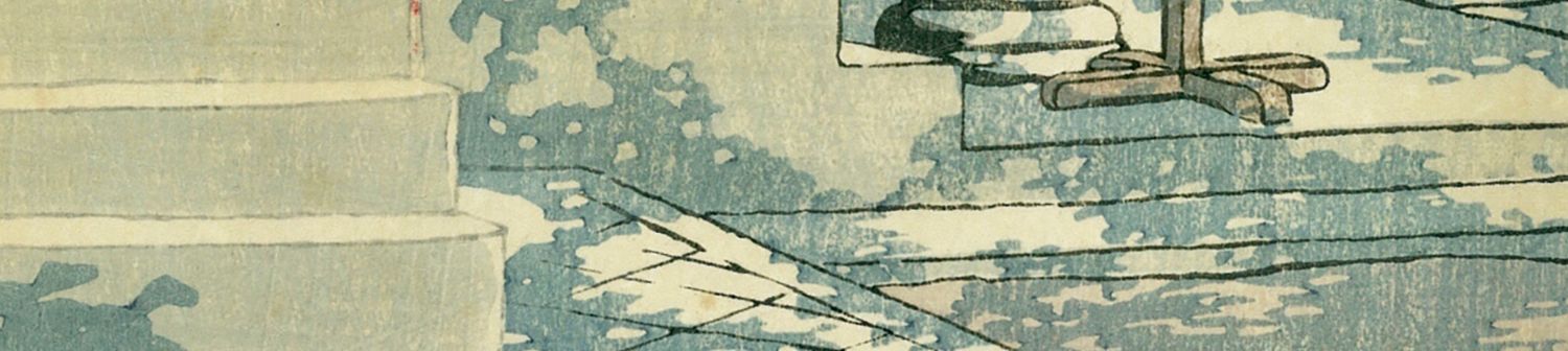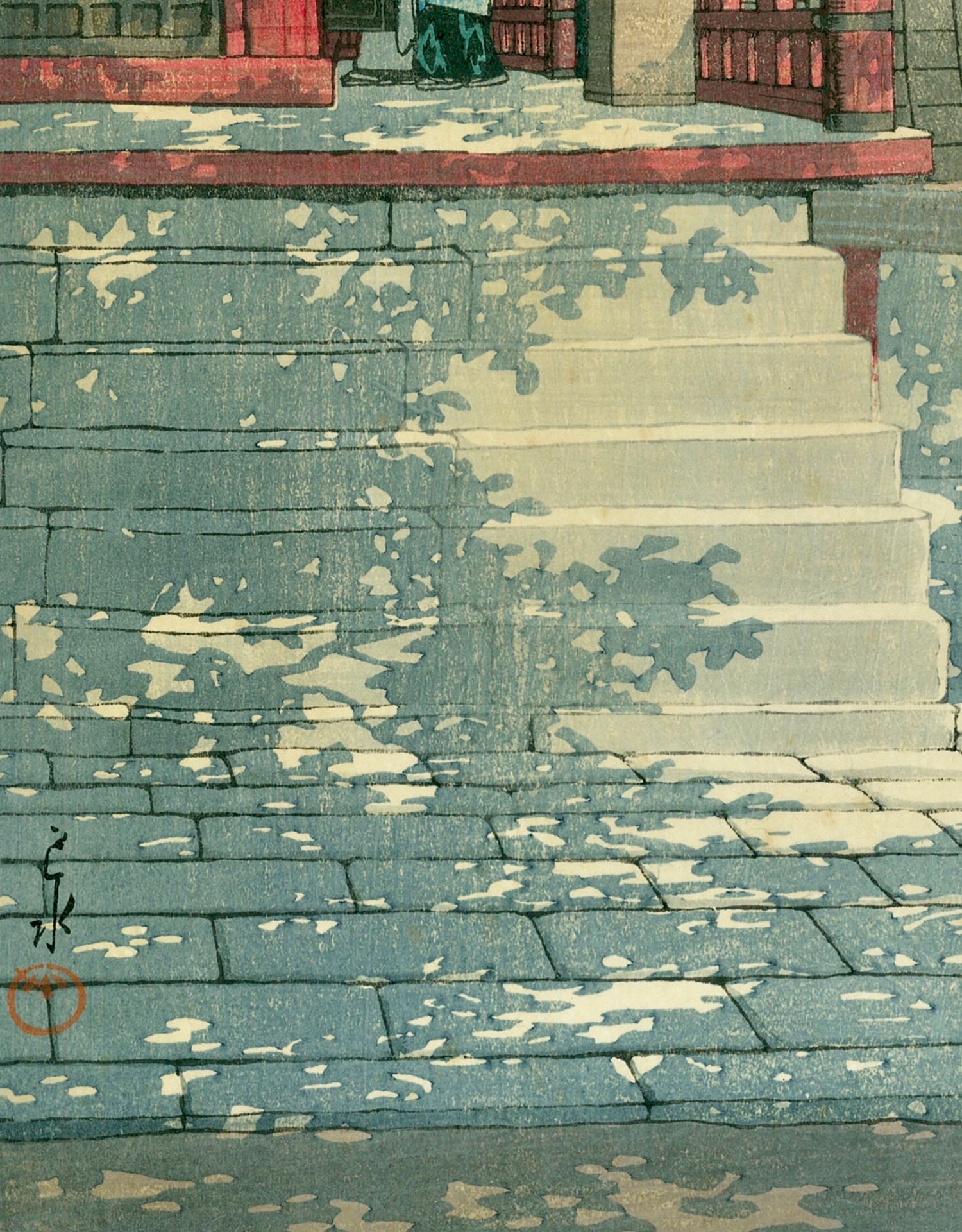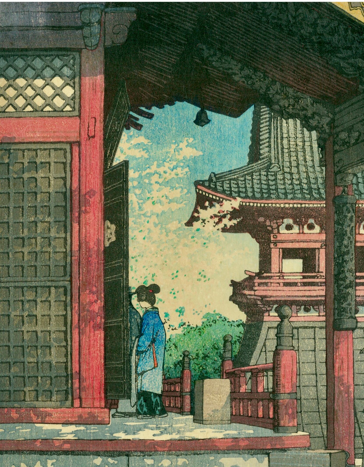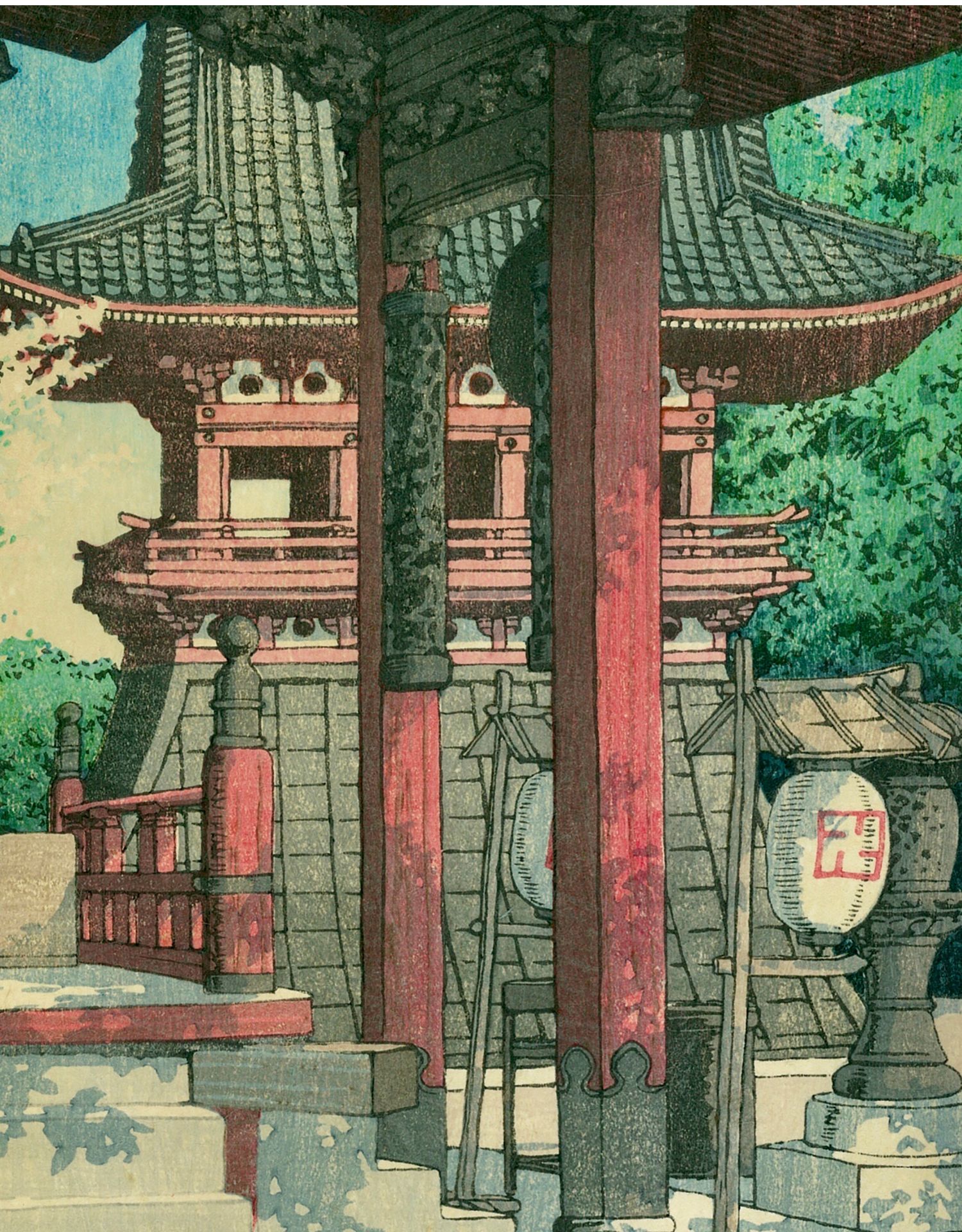 独角鹿西洋古董日本昭和时代新版画大师川濑巴水《目黒不動堂》