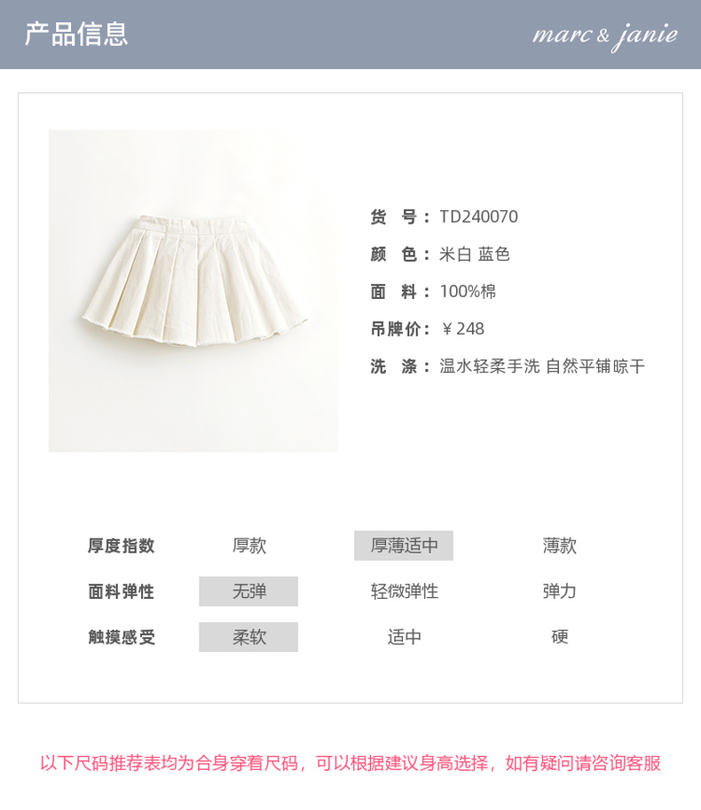 马克珍妮女童元气学院百褶裙短裙半身裙纯棉裙子春装新款240070
