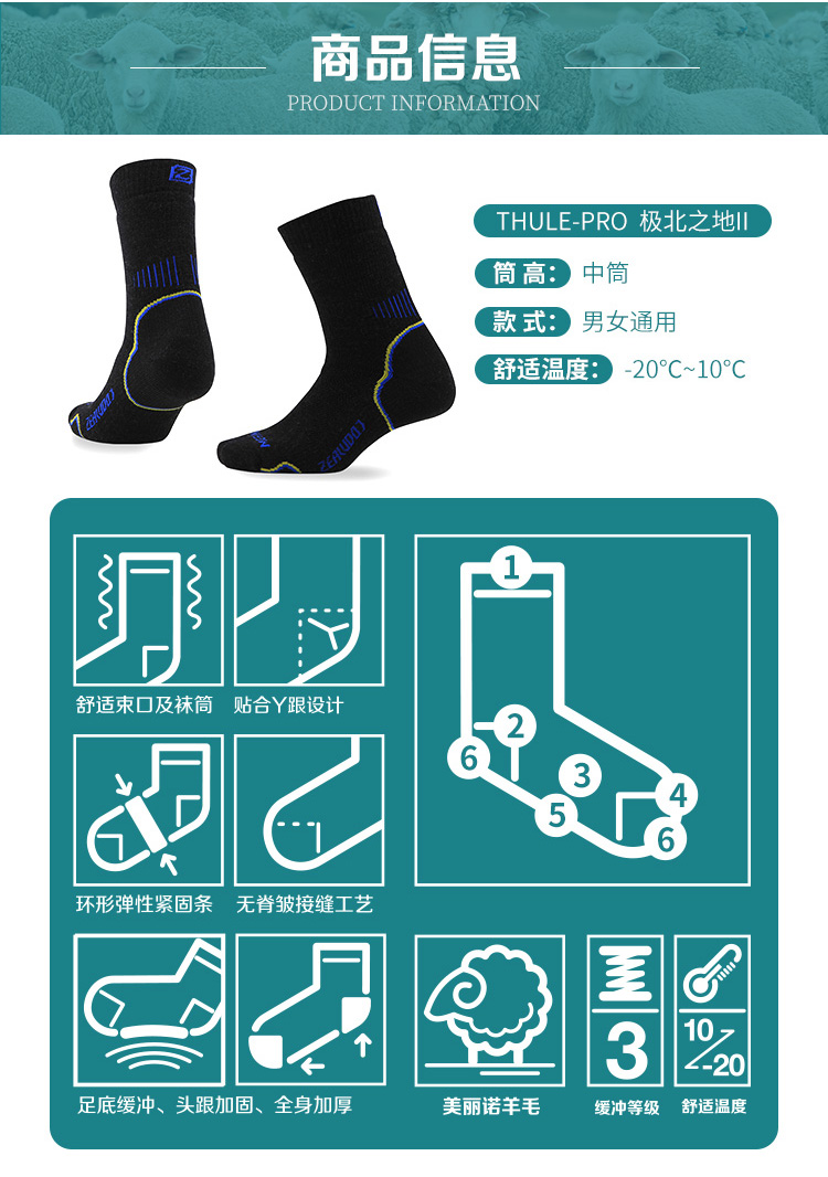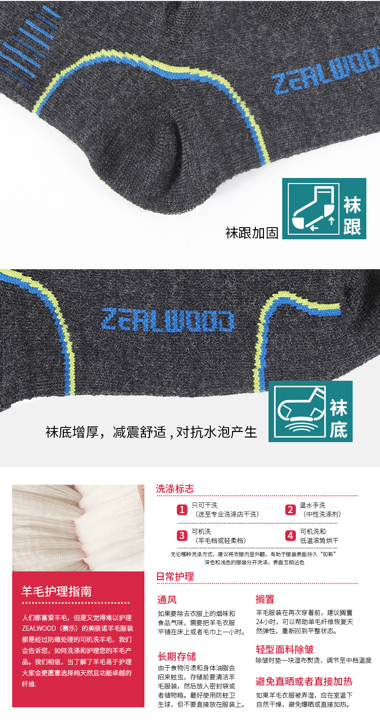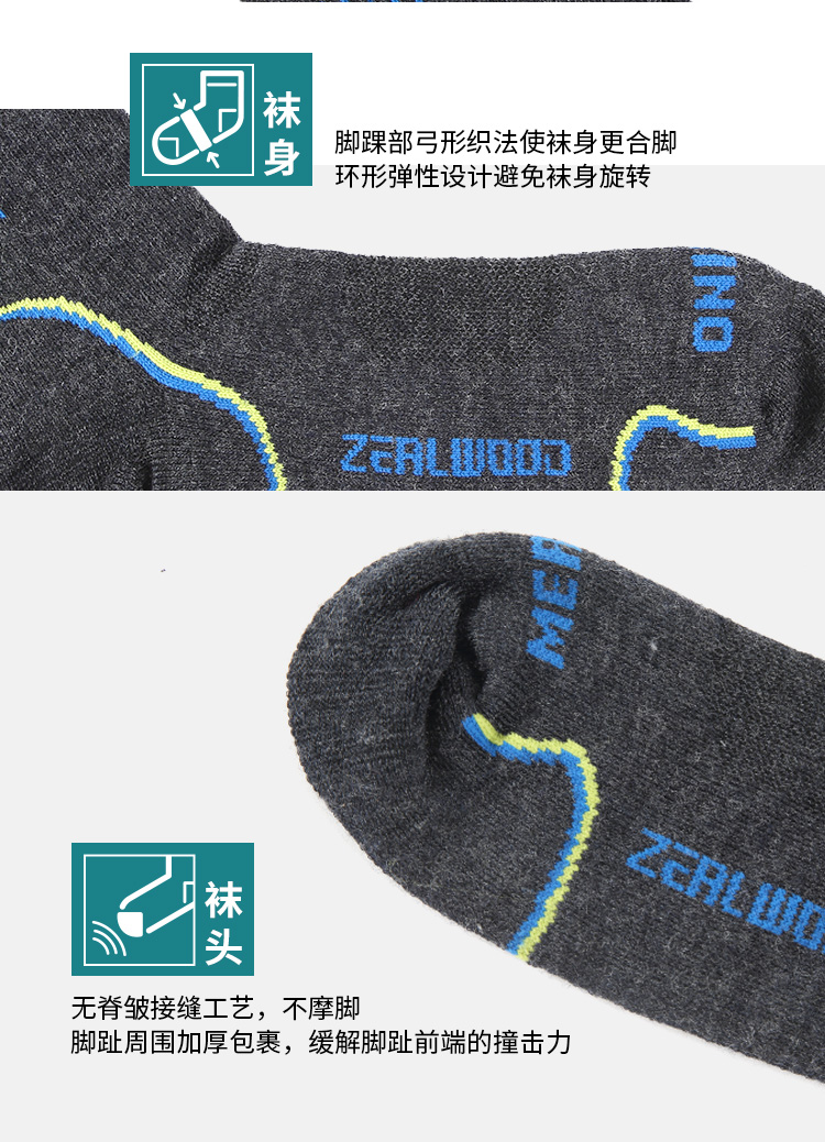 双11特惠ZEALWOOD赛乐THULE极北之地 美丽诺羊毛运动袜户外袜速干加厚防臭功能袜