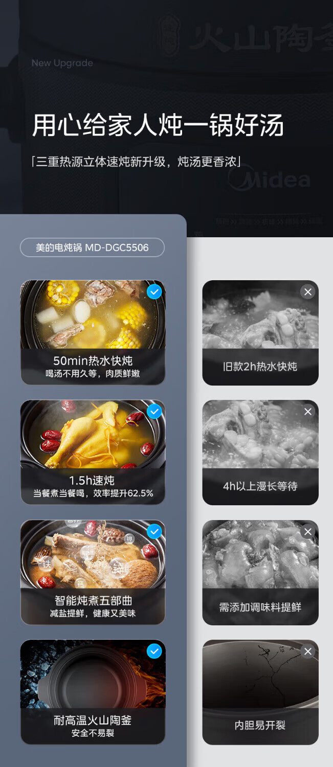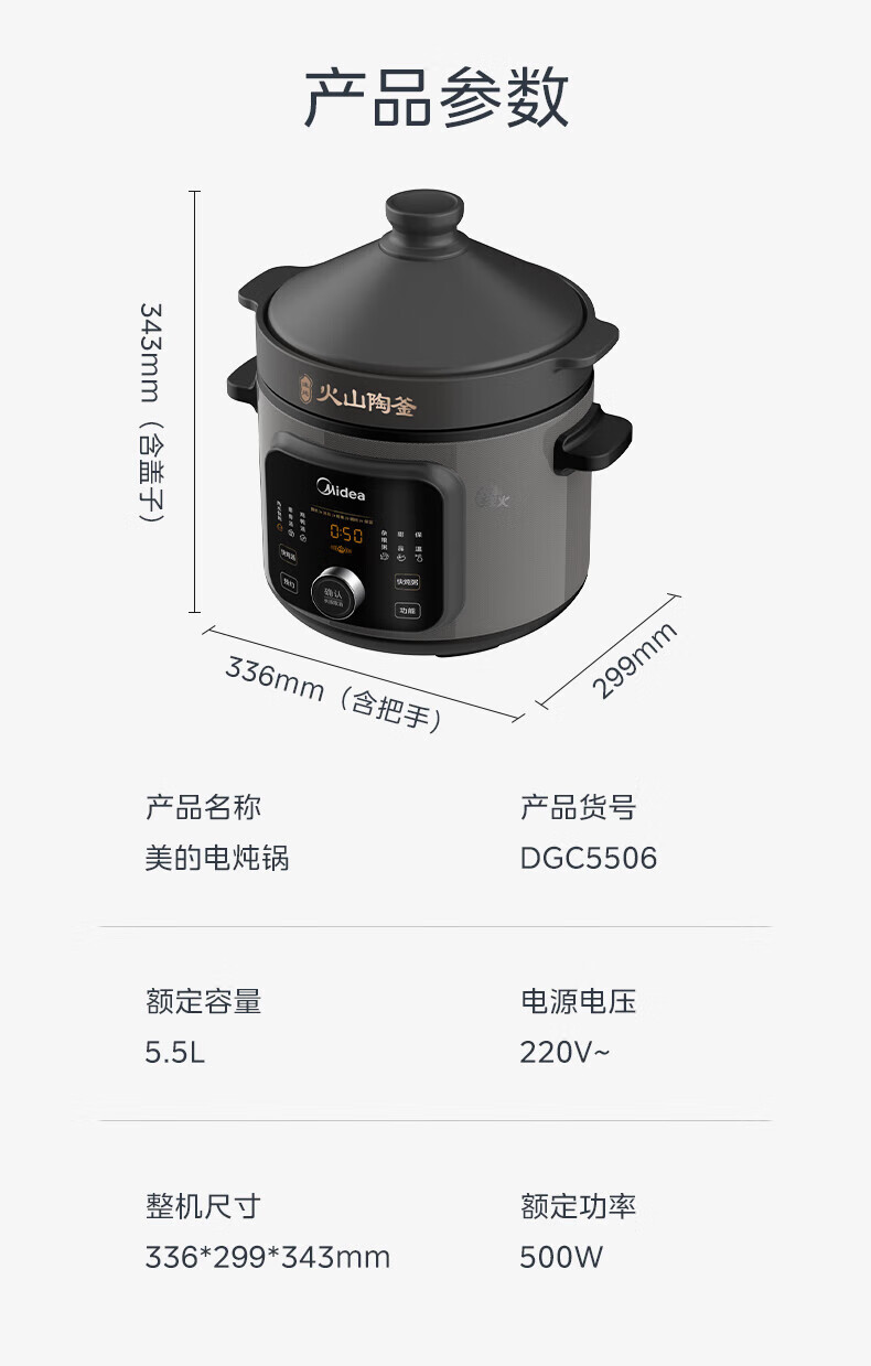 美的(Midea)(510567)电炖锅多功能电炖盅立体加热煲汤锅智能预约定时小火慢炖原汁原味家用大容量慢炖锅 DGC5506