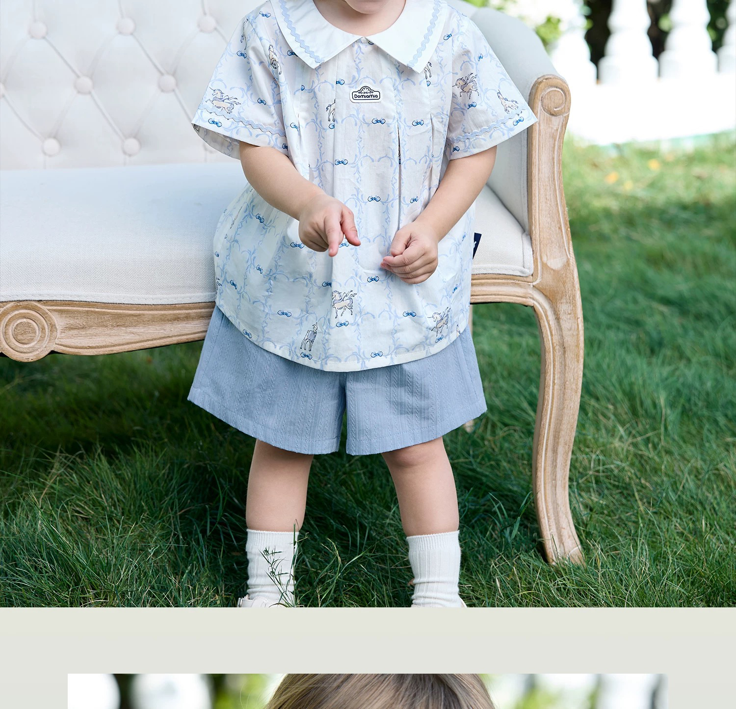 Domiamia 男宝宝梭织短袖方领上衣 男童衬衣