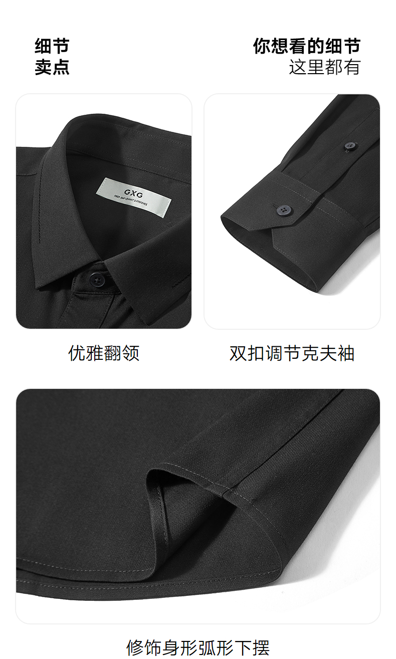 GXG男装 不易皱商务衬衫精致绣花通勤衬衣职业衬衫 2025秋季热卖
