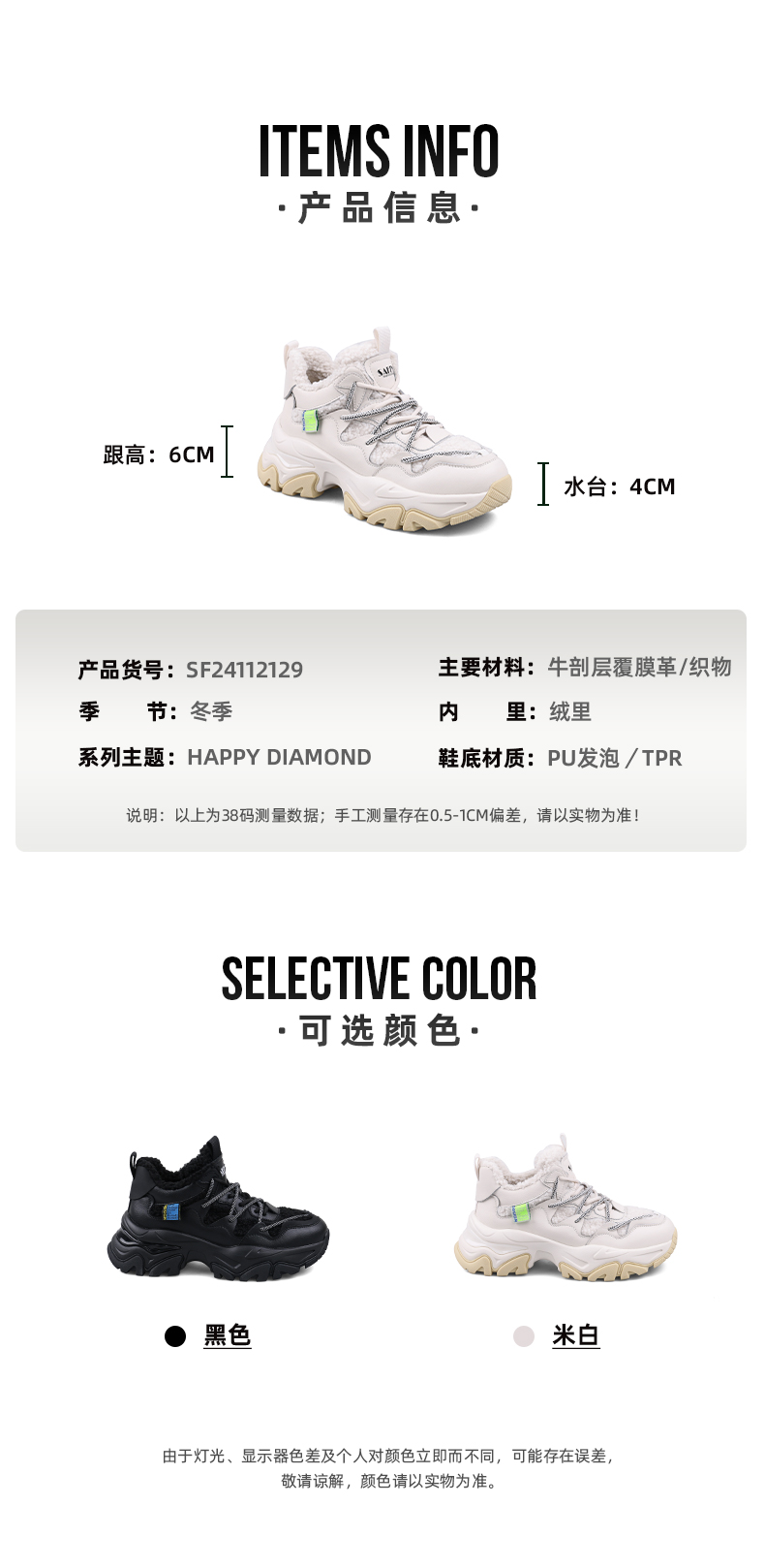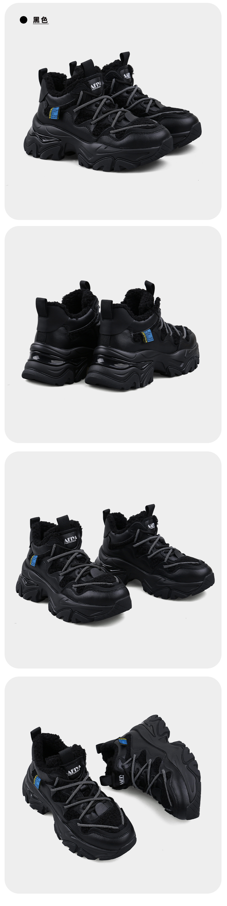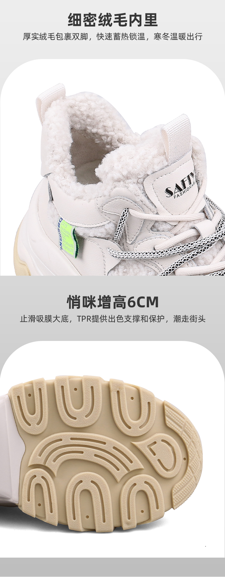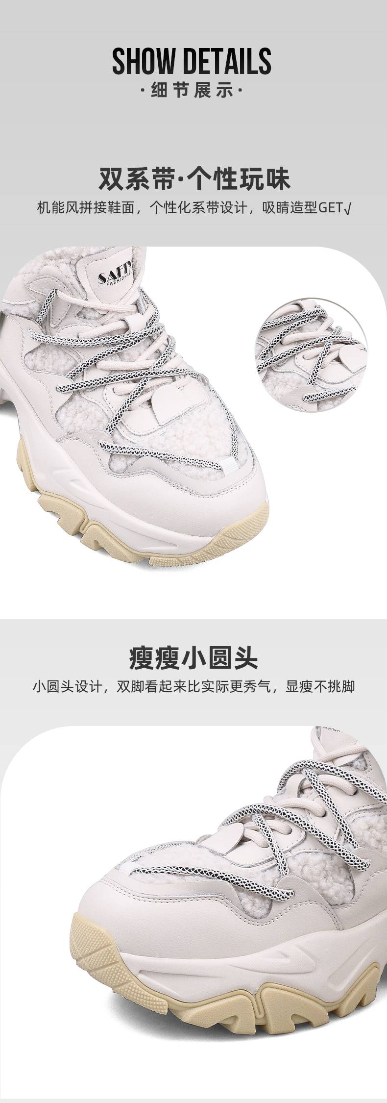 Safiya/索菲娅 潮酷双系带2022冬季新款加绒小个子拼接厚底增高老爹鞋 SF24112129