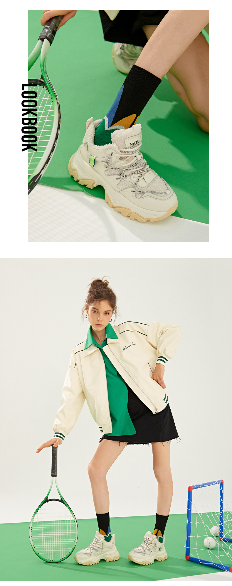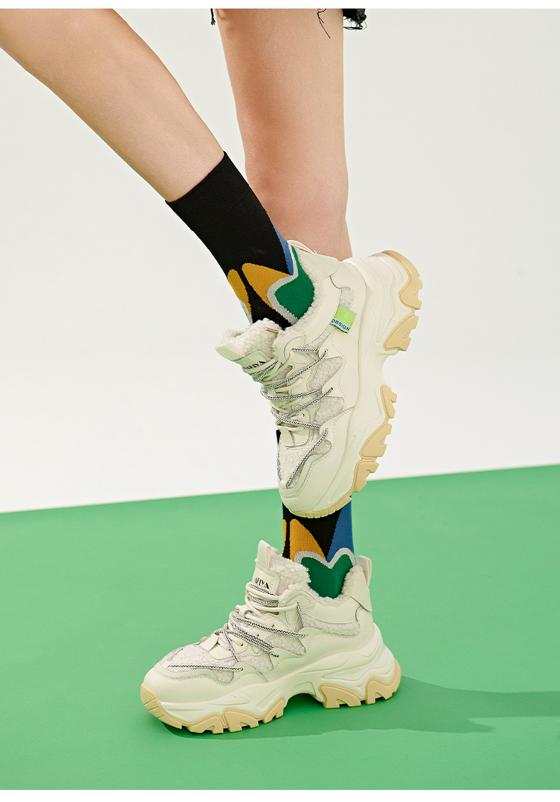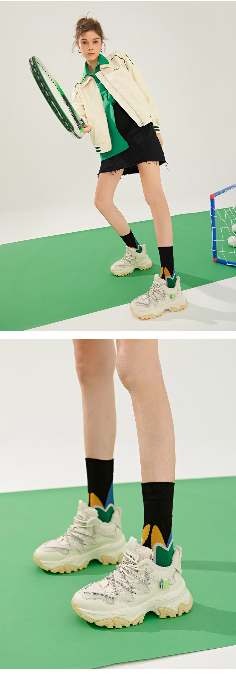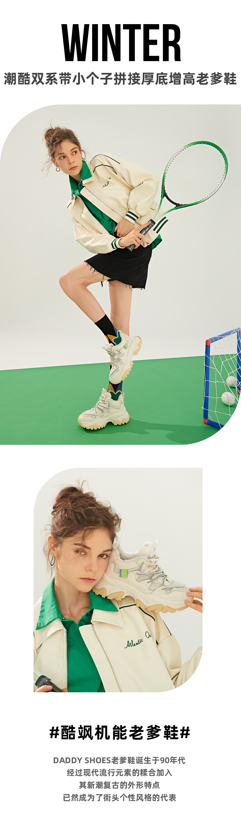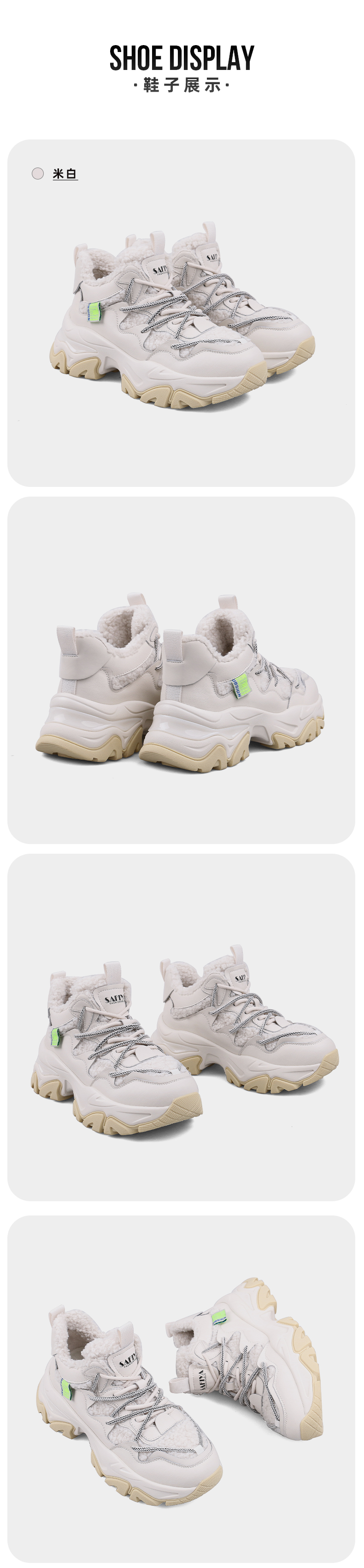 Safiya/索菲娅 潮酷双系带2022冬季新款加绒小个子拼接厚底增高老爹鞋 SF24112129