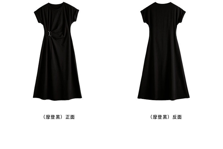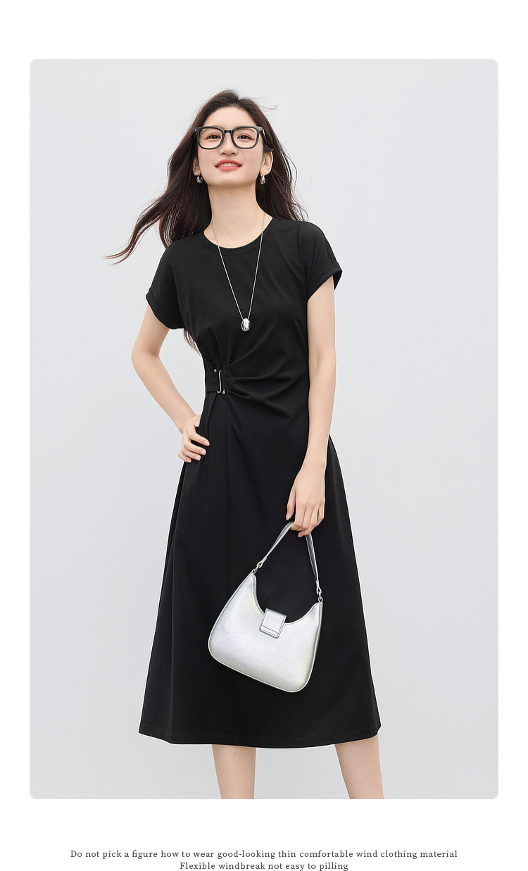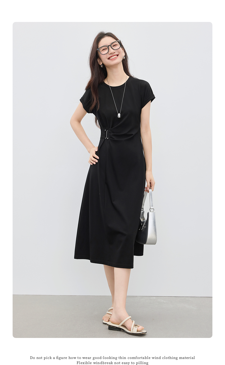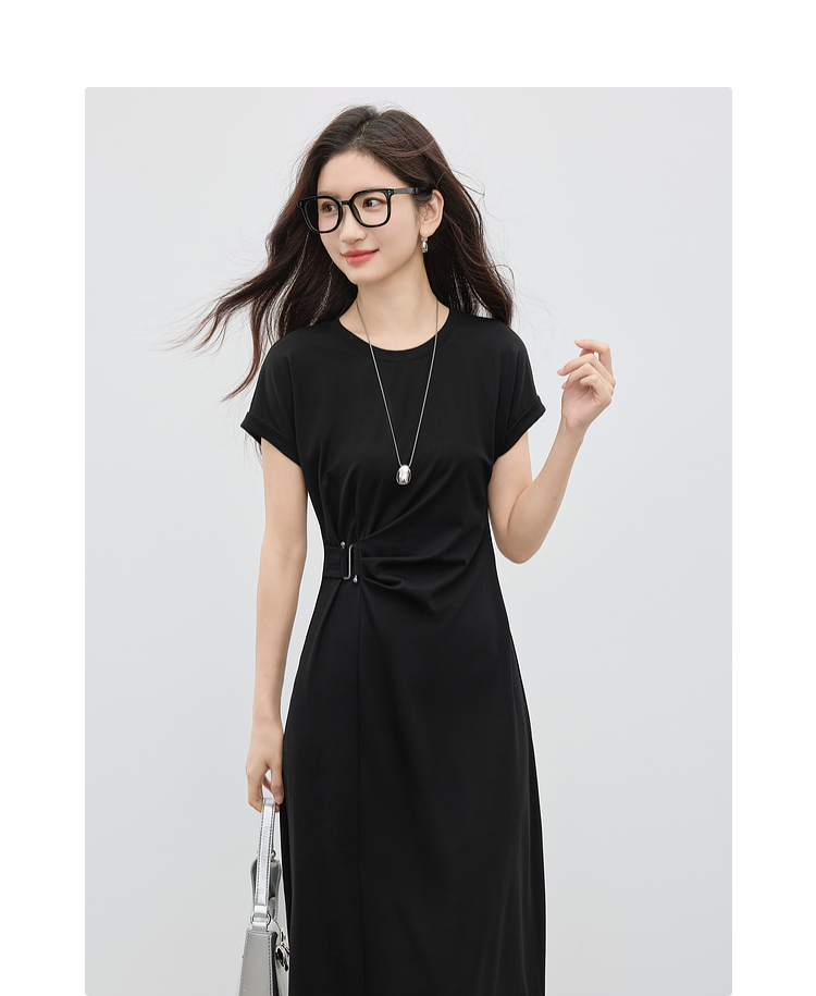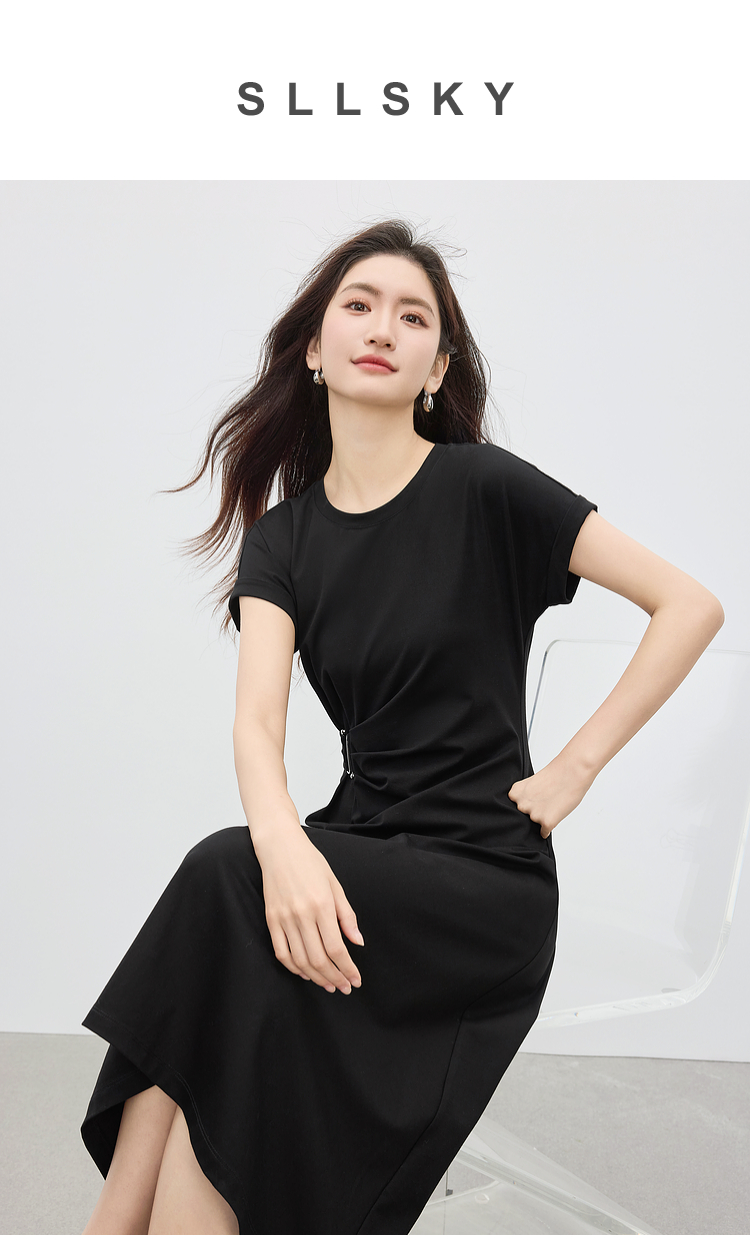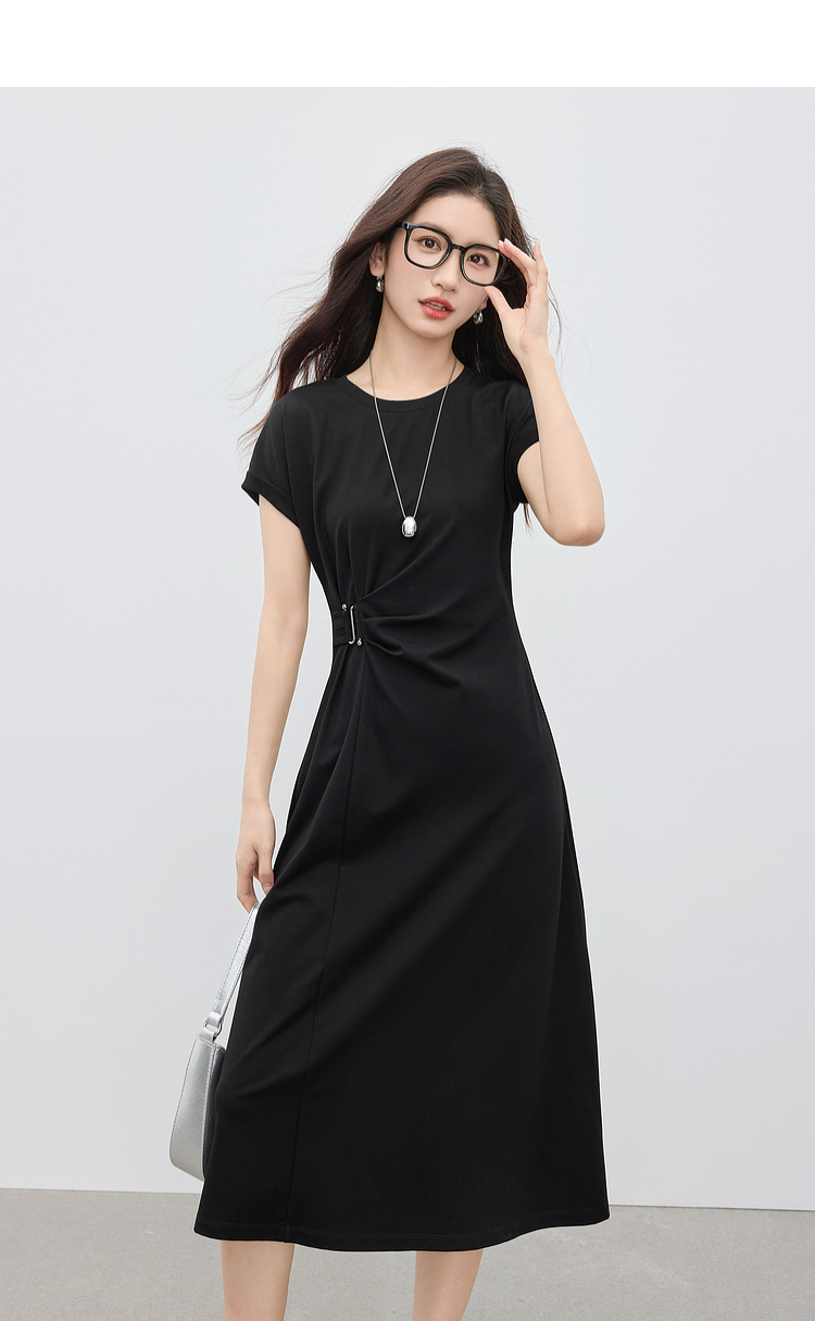【专属特价】熙世界赫本风黑色t恤连衣裙女夏季2025新款小众设计收腰显瘦长裙