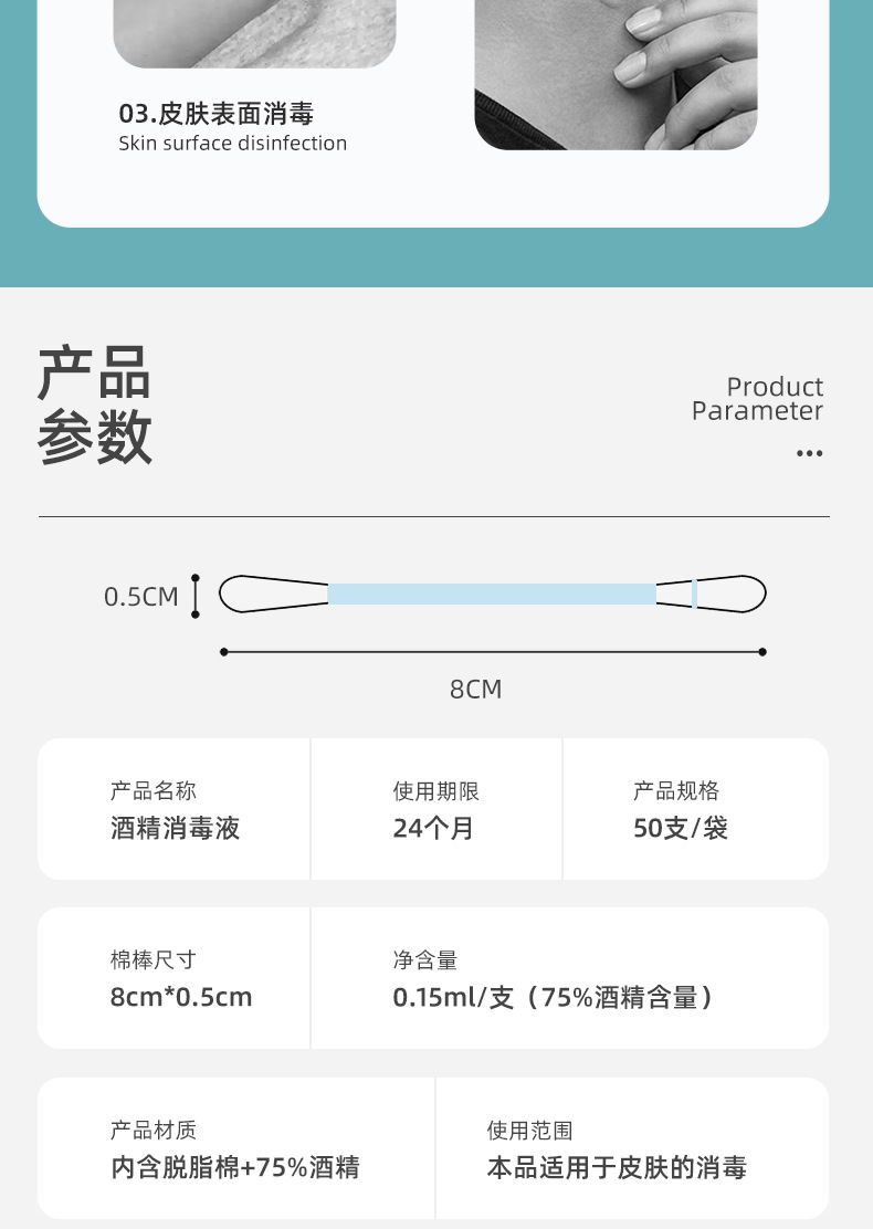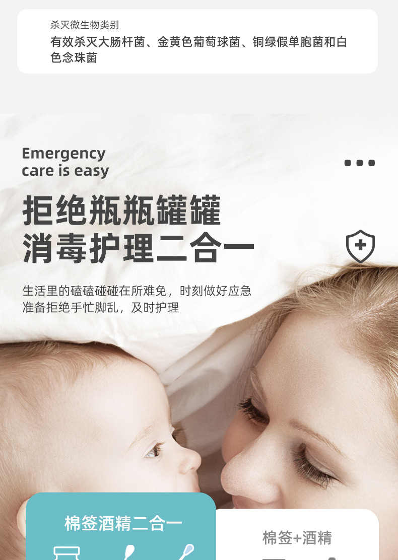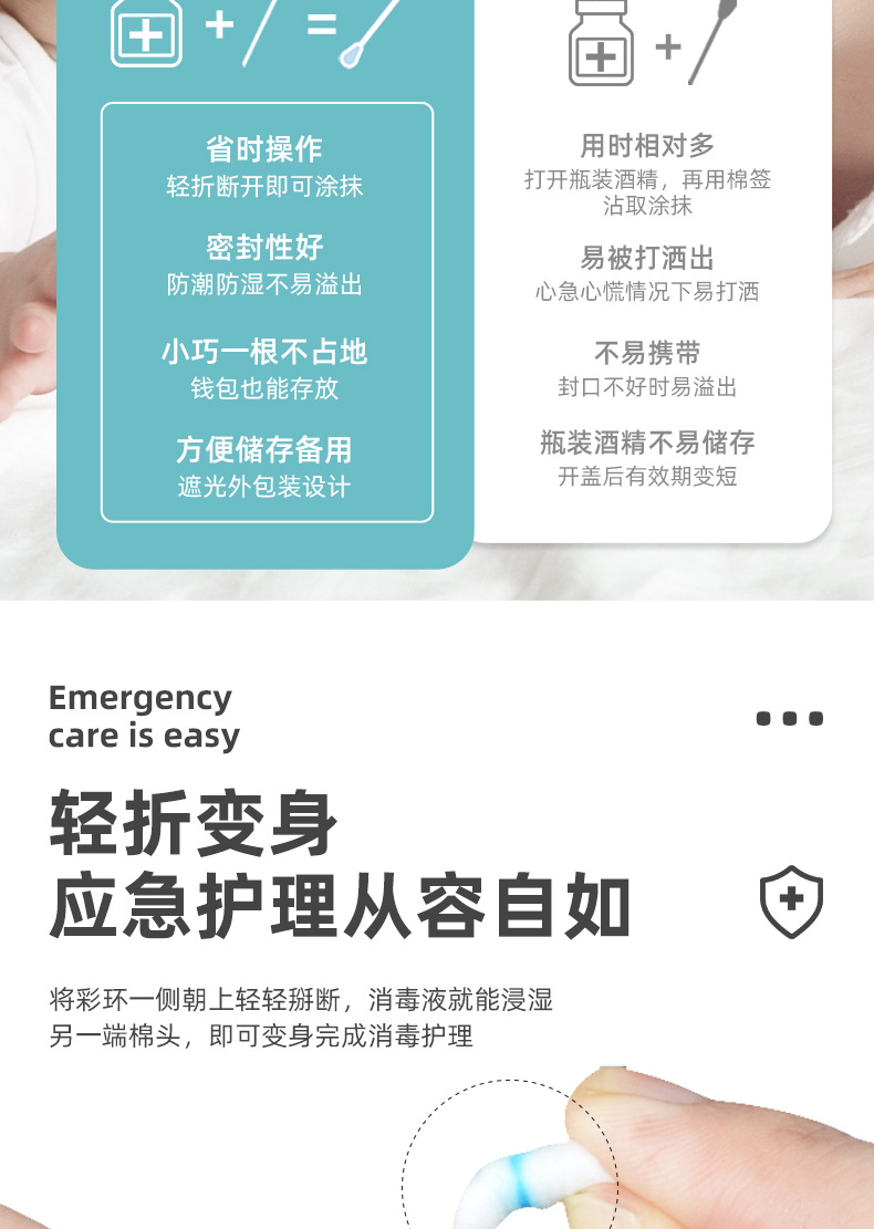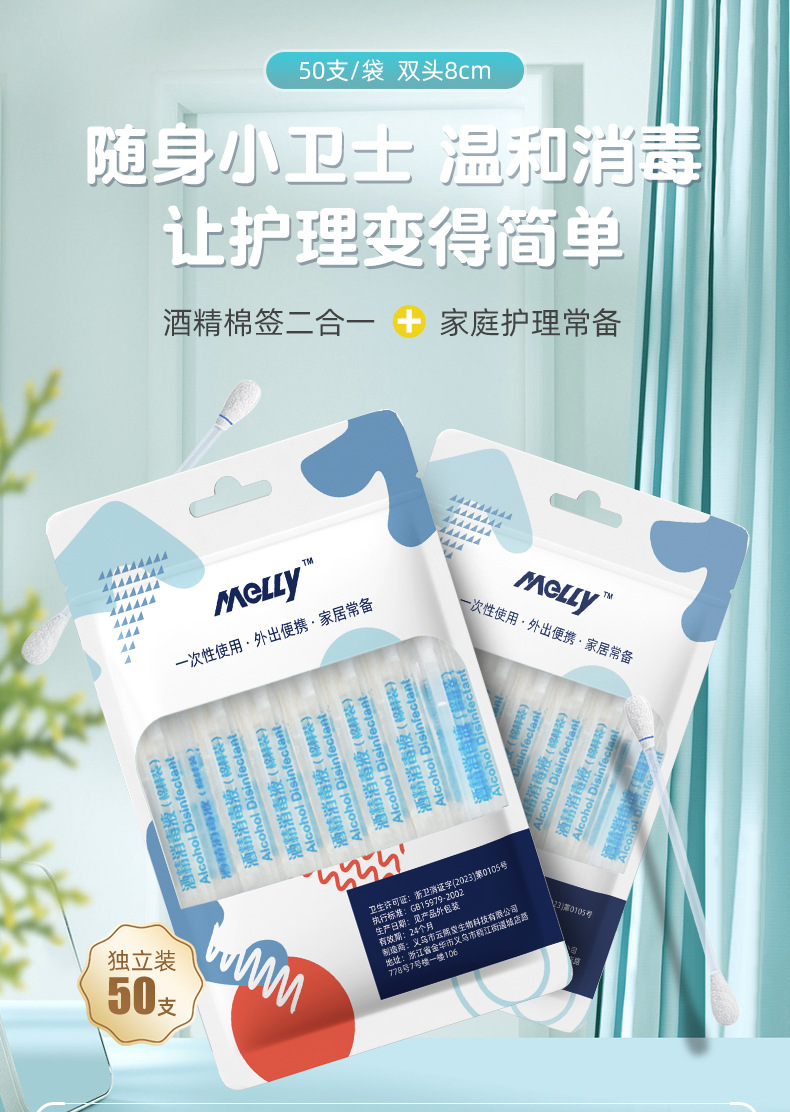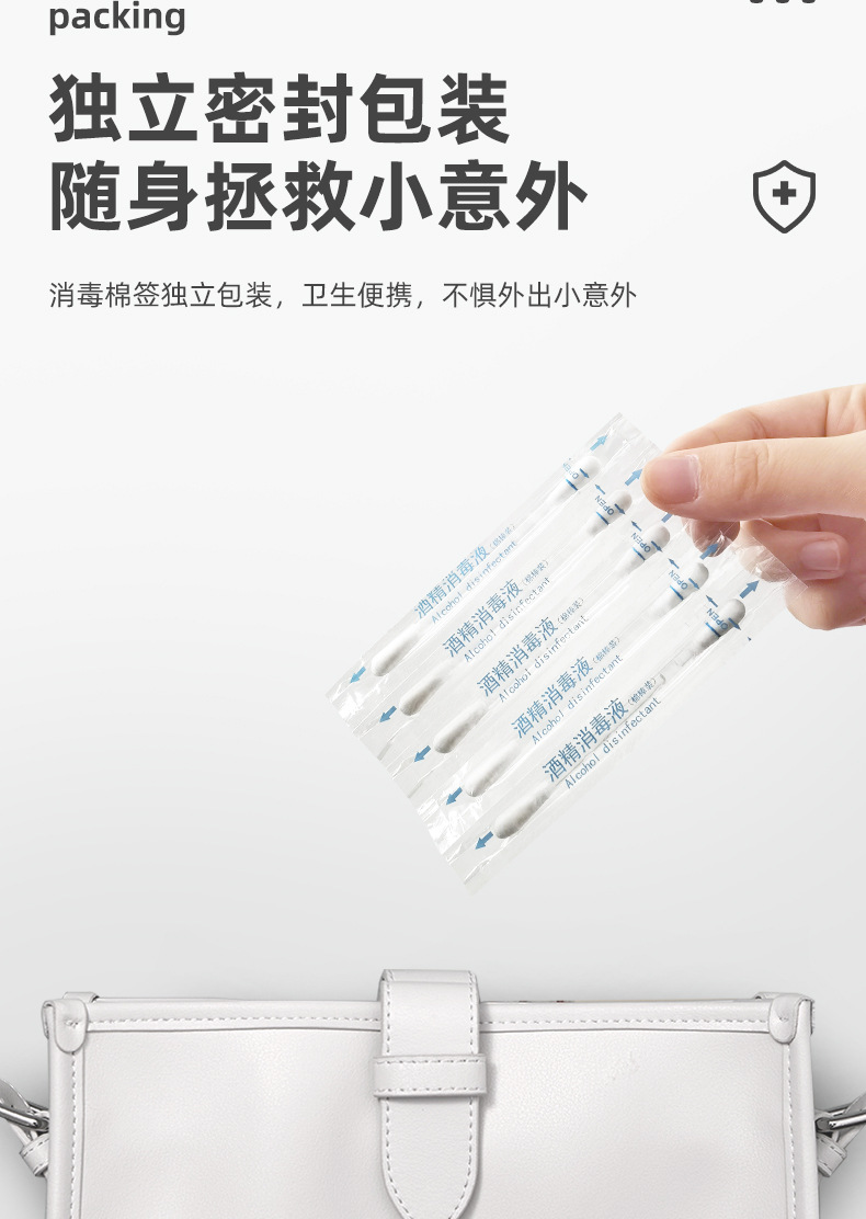 「9.9元包邮!50支装」酒精棉签一次性便携卫生折断式棉棒 居家日用清洁伤口便携式独立装棉签