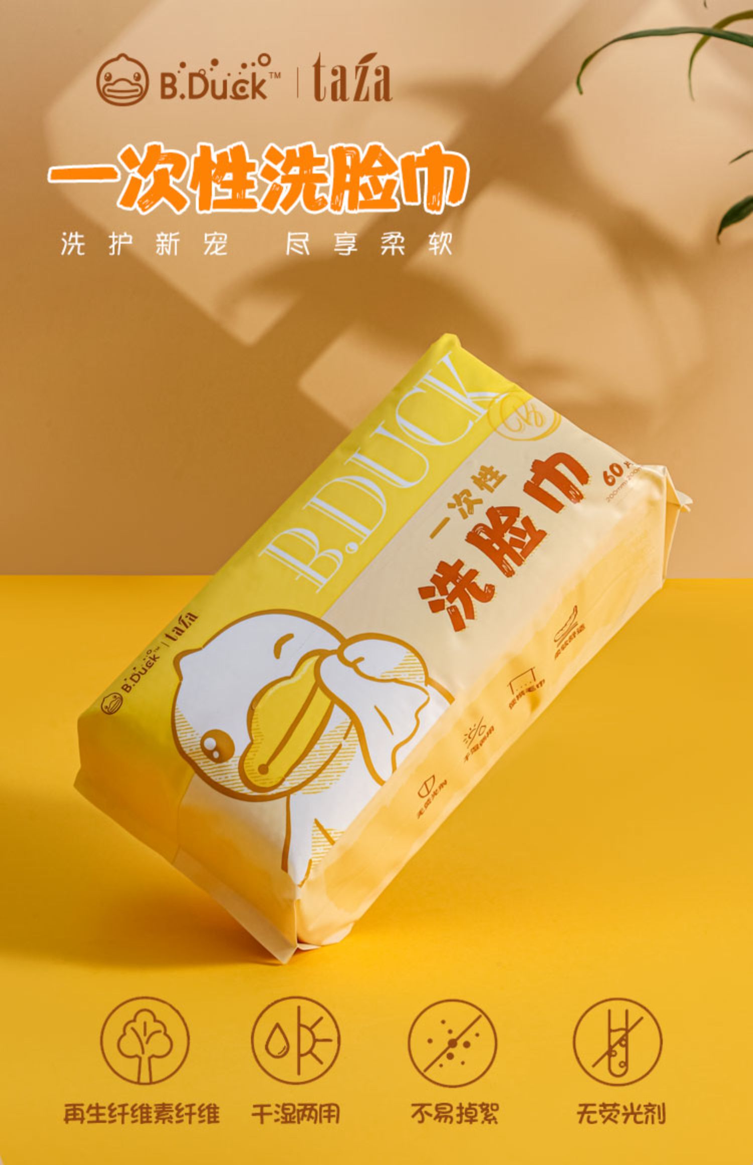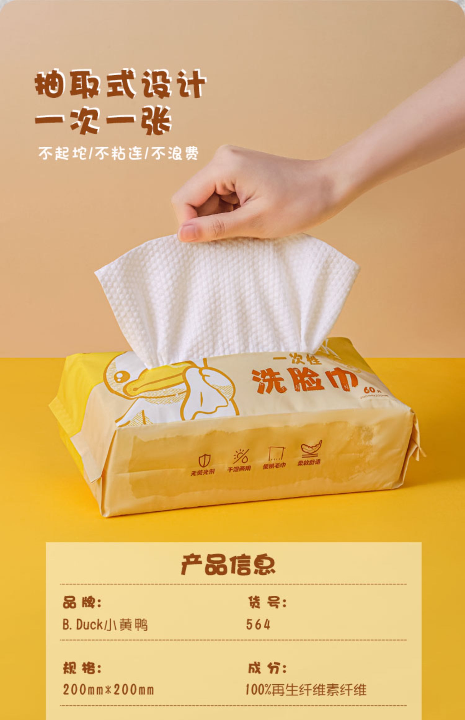 B.Duck小黄鸭一次性洗脸巾加大加厚抽取式棉柔巾家用干湿两用毛巾