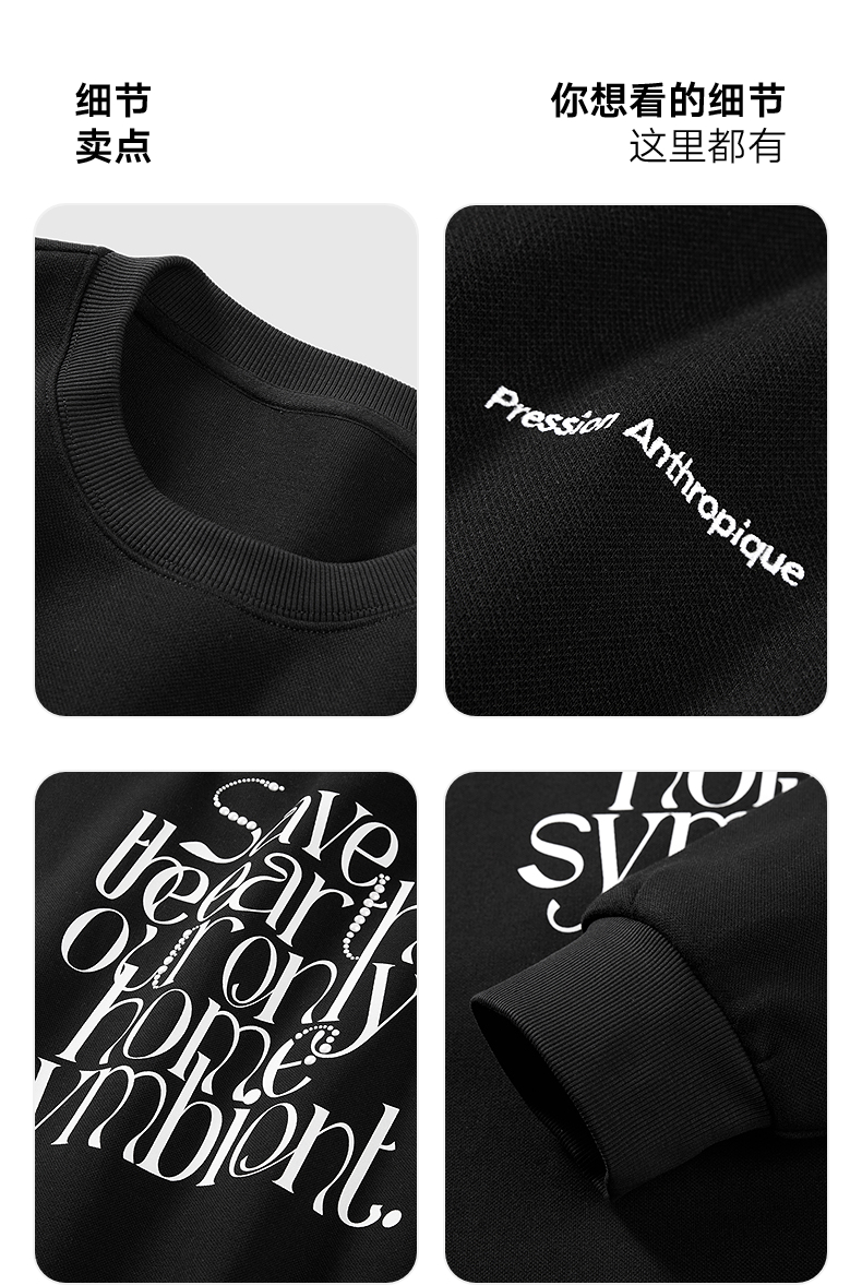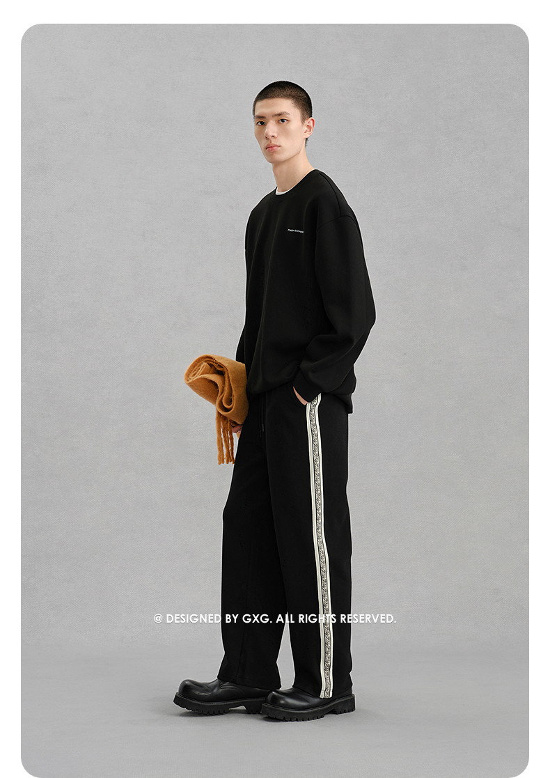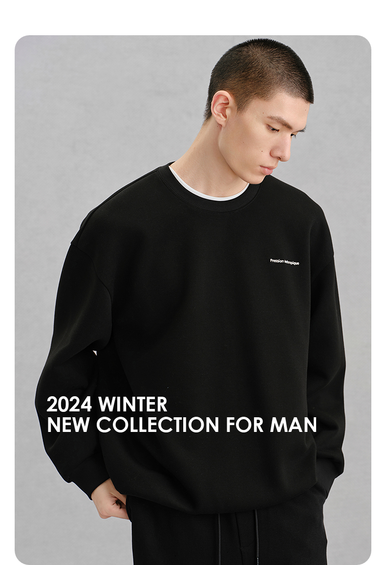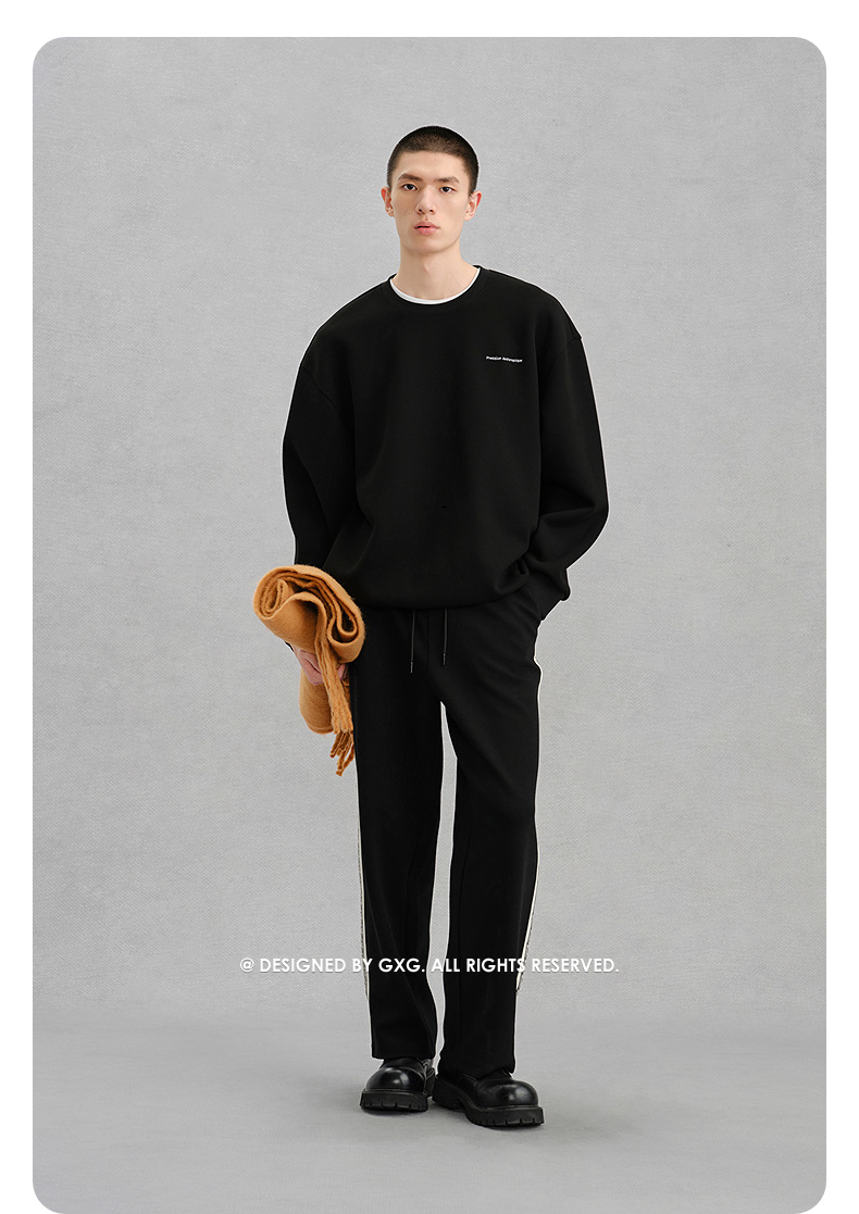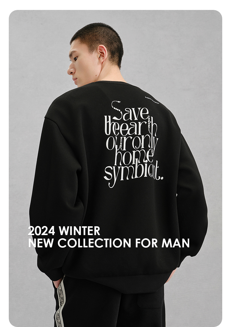 GXG男装黑色后背图案休闲通勤卫衣24冬热卖G24X314037