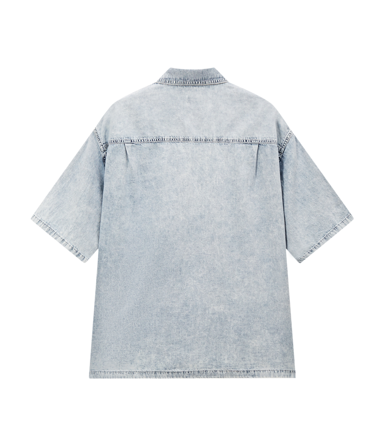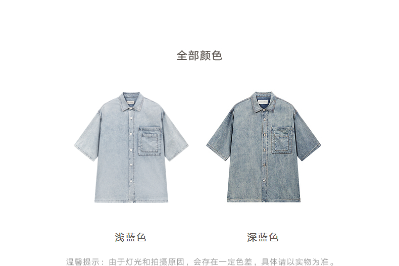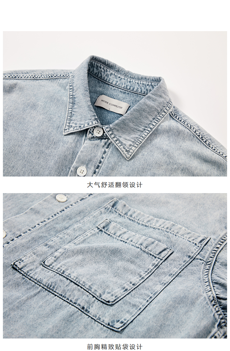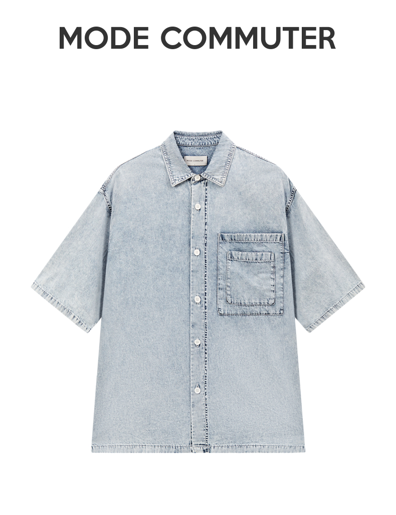 MODE COMMUTER夏季口袋翻领牛仔衬衫潮流男士短袖MCD123304D