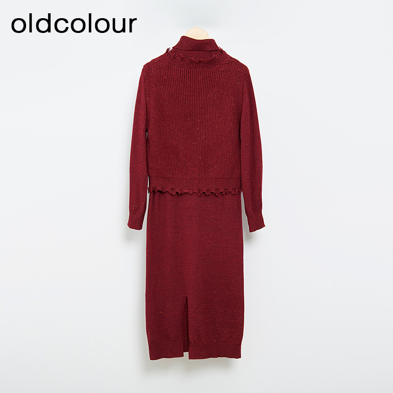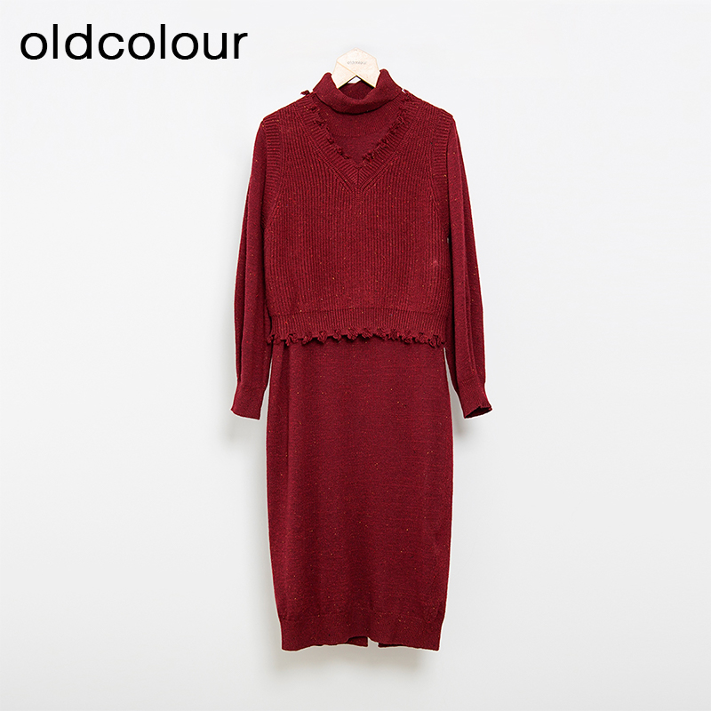 oldcolour秋冬款复古气质百搭宽松毛织连衣裙女L43106383