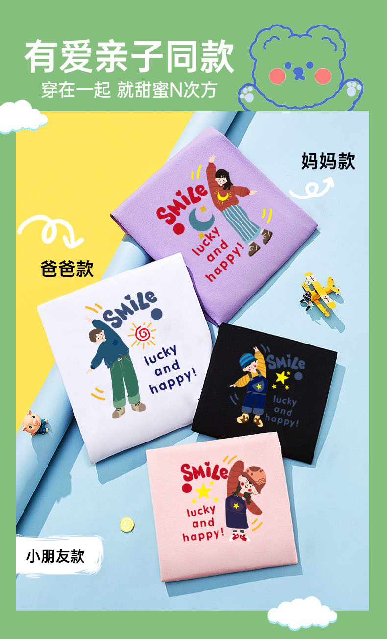特别的亲子装高级感2024夏季纯棉卡通上新一家三四口母女父子家庭T恤短袖90-150码