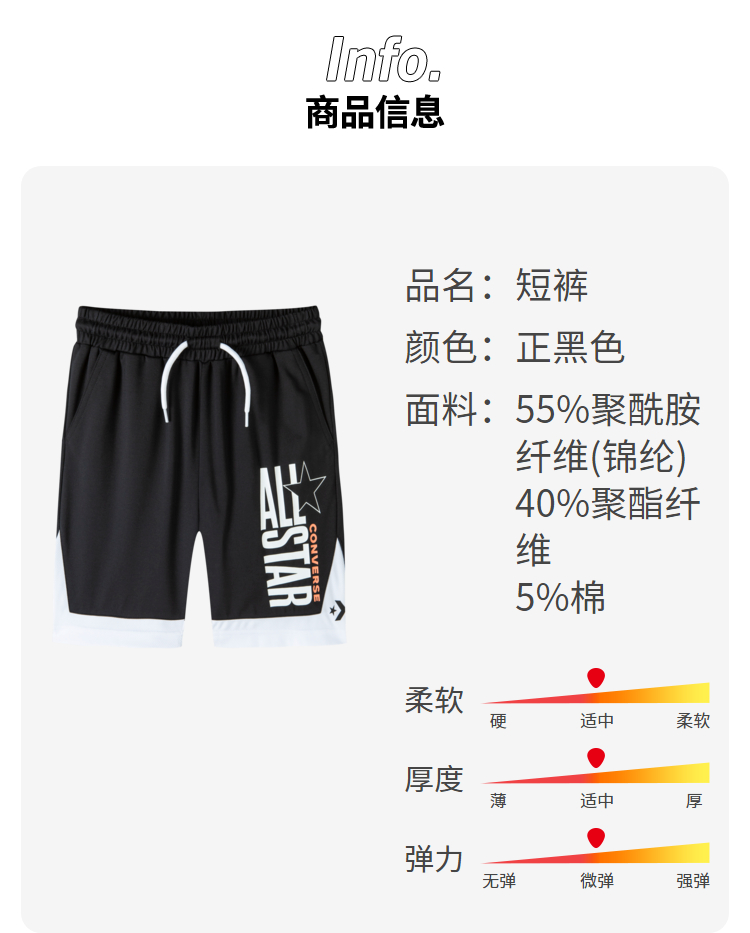 CONVERSE童装夏季新款男童宽松短裤儿童休闲裤5分裤男生裤子CV2222053