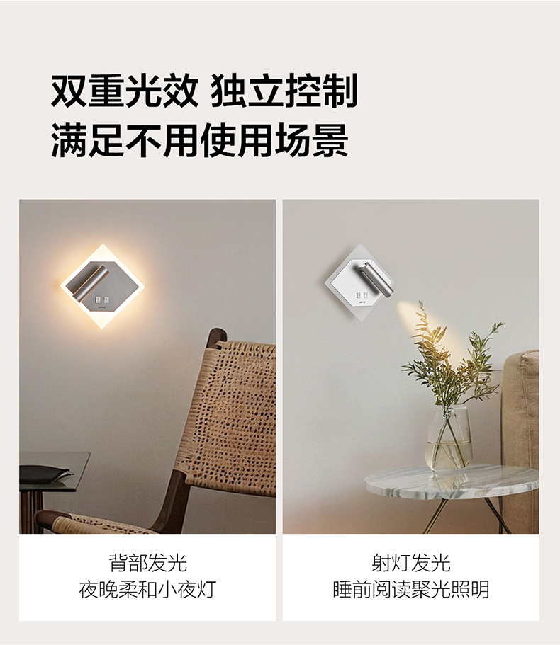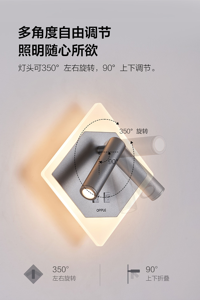 欧普(OPPLE)壁灯LED高显色田园现代中式卧室床头过道走廊温馨墙灯小方