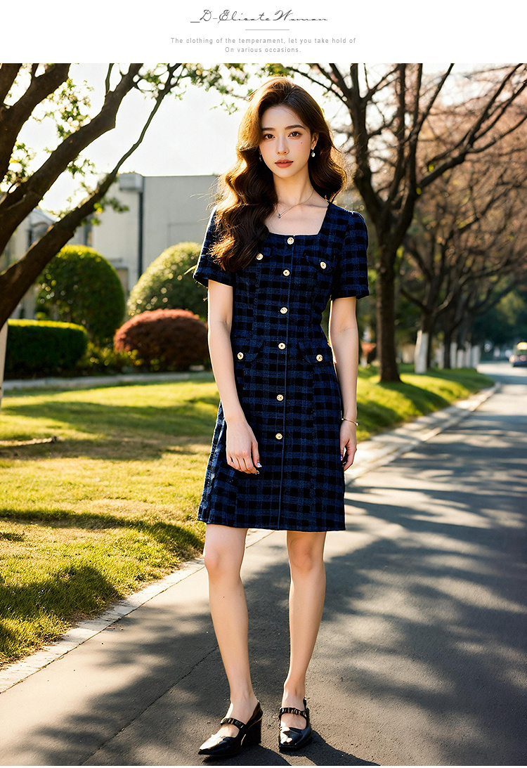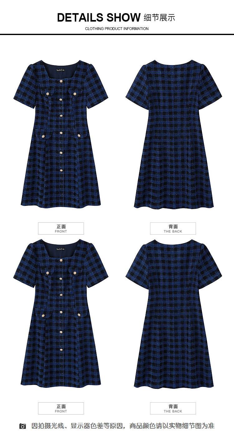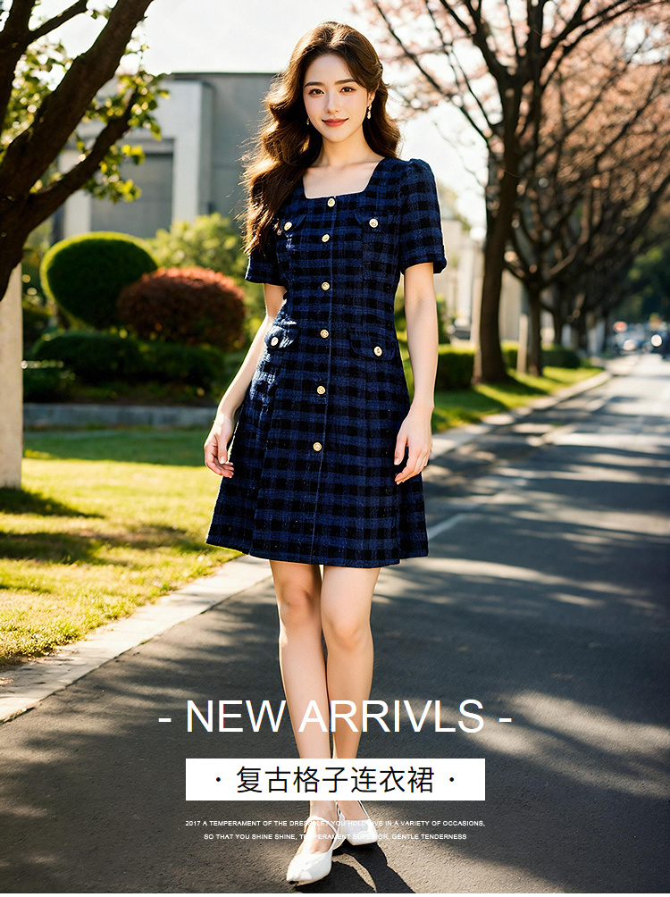 奢姿大码女装2025新款夏季胖妹妹法式收腰复古格子通勤气质连衣裙9952853136