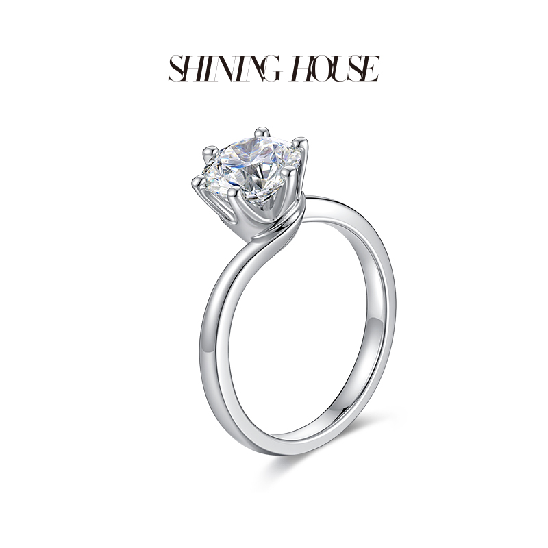【预售】ShiningHouse[培育] 18k金钻石戒指 圆钻形1.5克拉钻人工真钻人造钻石K金戒指简约六爪钻石戒指悦己送礼臻选【此商品不支持7天无理由退货退款】