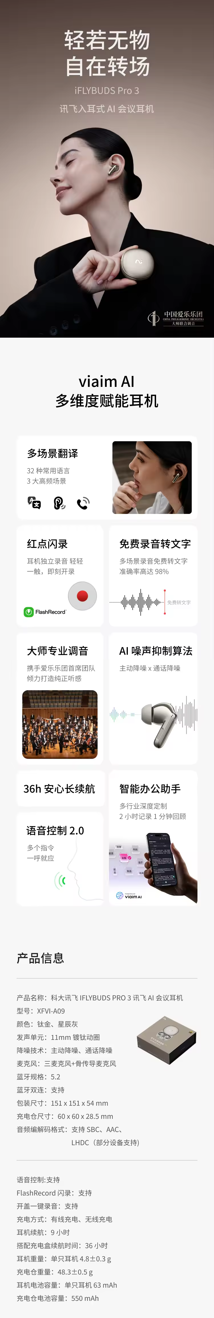 IFLYTEK科大讯飞 IFLYBUDS PRO 3 讯飞 AI 会议耳机 新