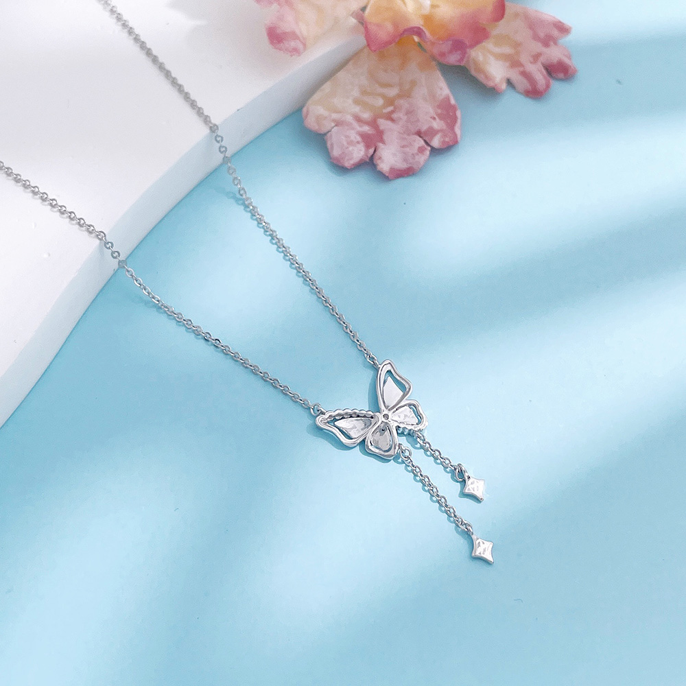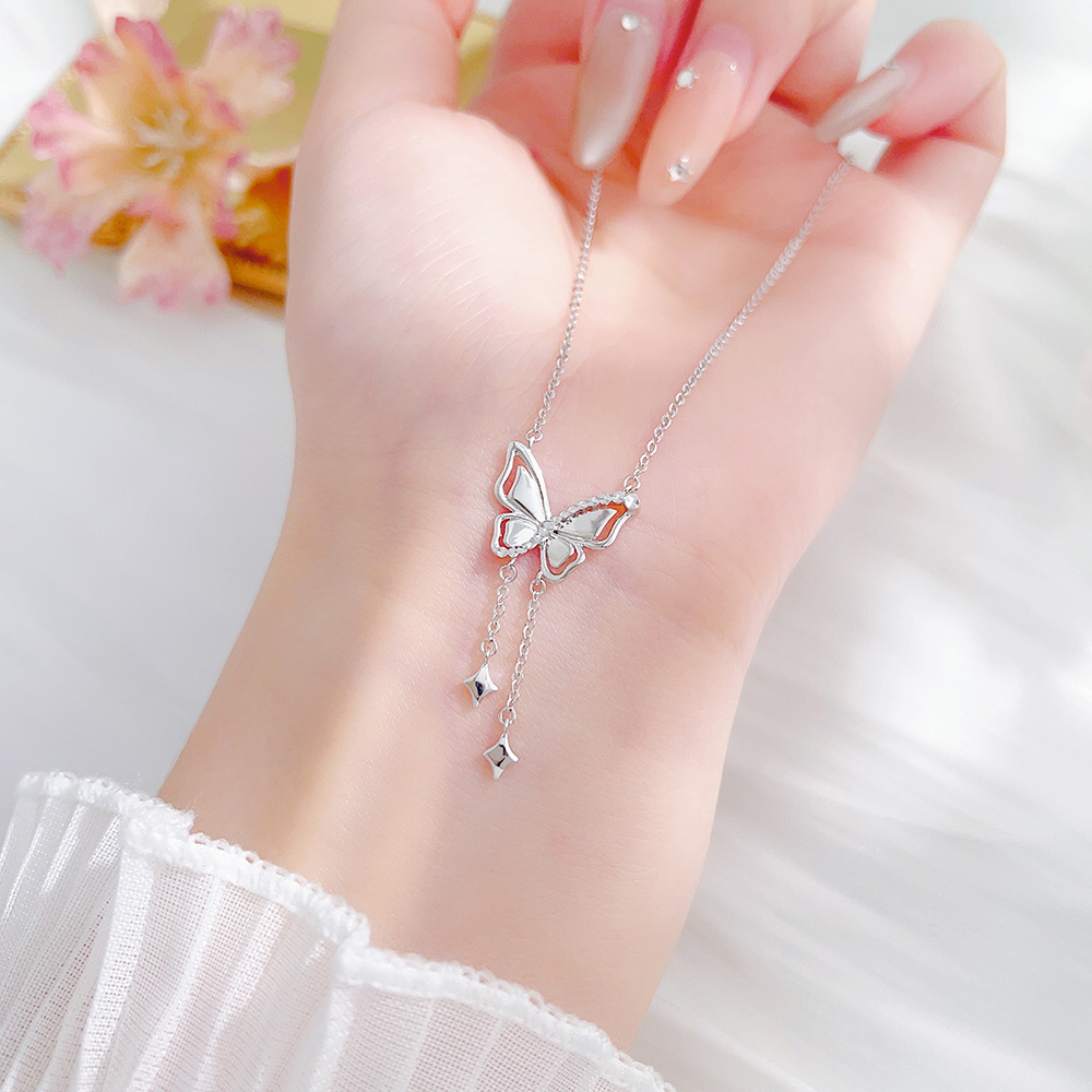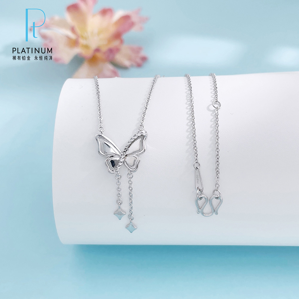 【限时8.8折】【线上铂金馆】PT950 #九紫离火 【国际铂金协会】铂金仿钻镂空蝴蝶星星流苏调节套链(BTL00233)预售产品下单后不退款不退货不换货不补差价)