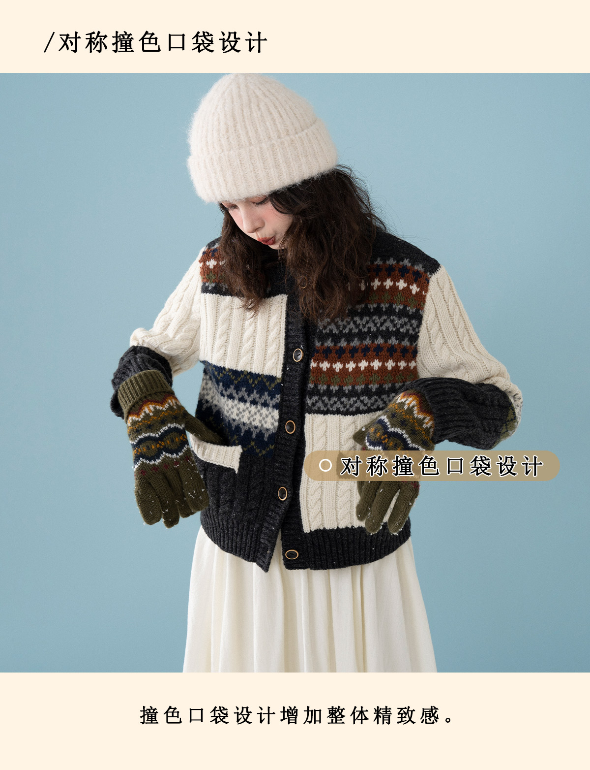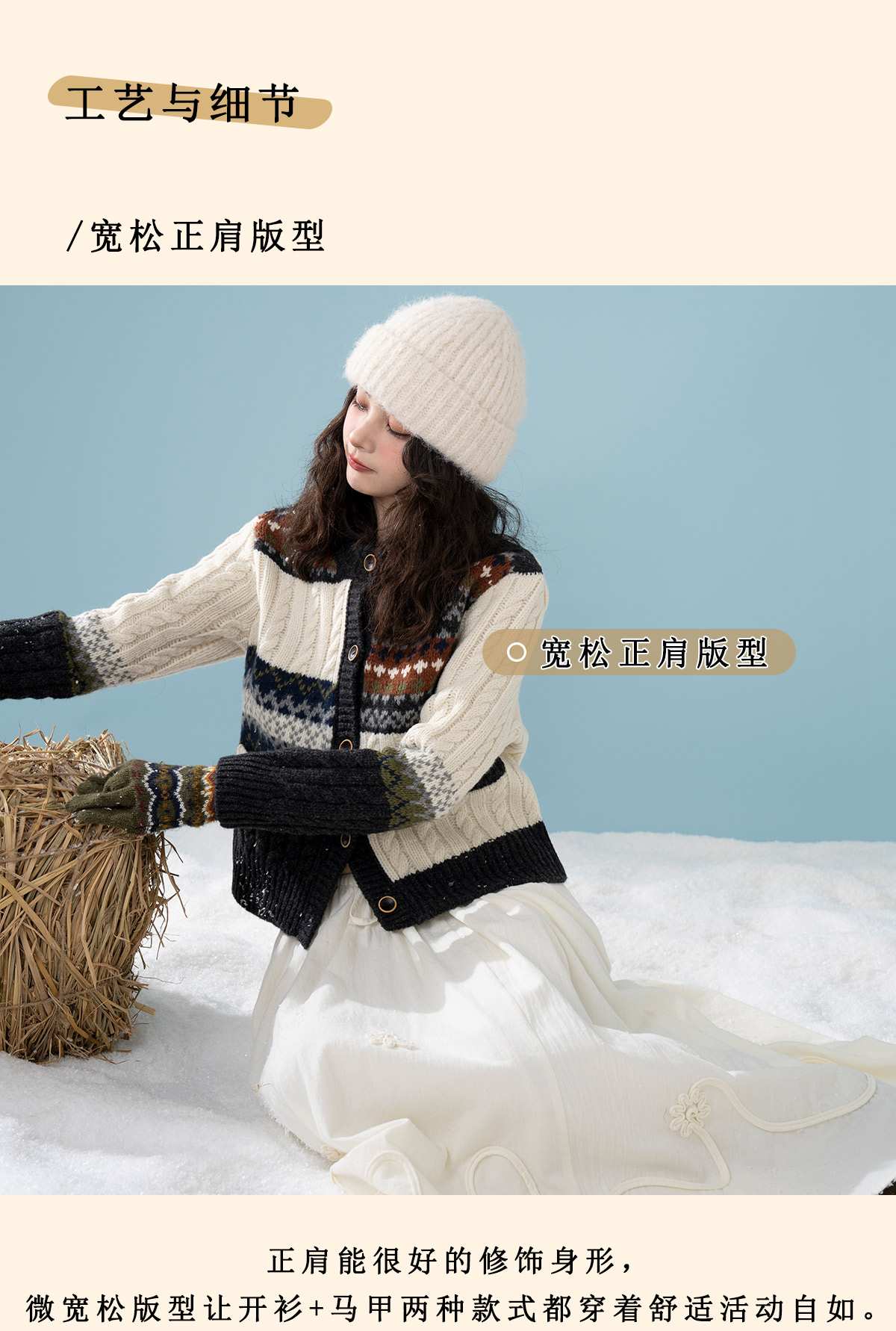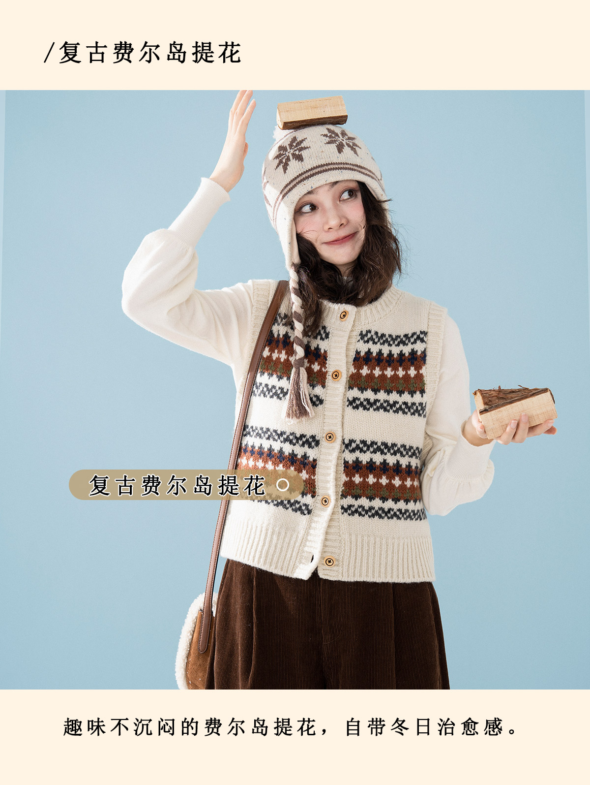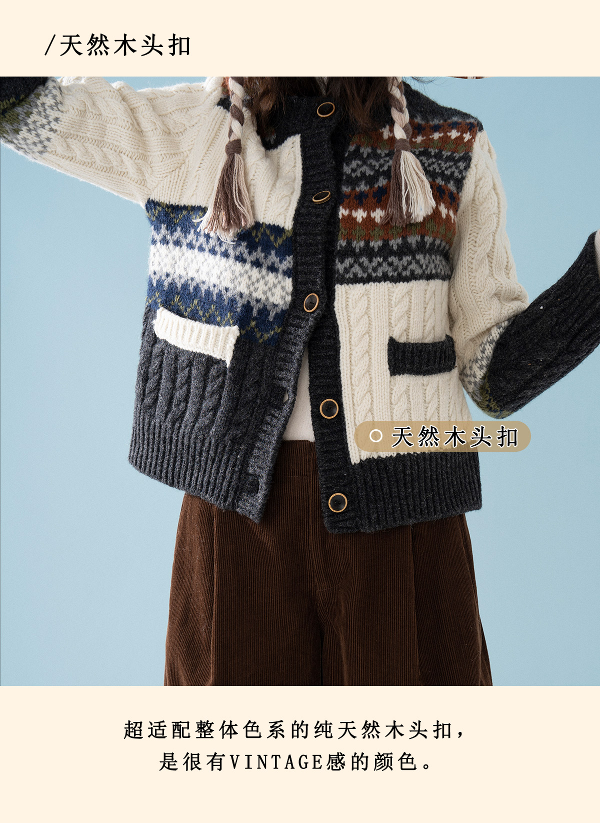 浮生八记/25D238/25D220/全羊毛不规则费尔岛手工毛衣开衫马甲