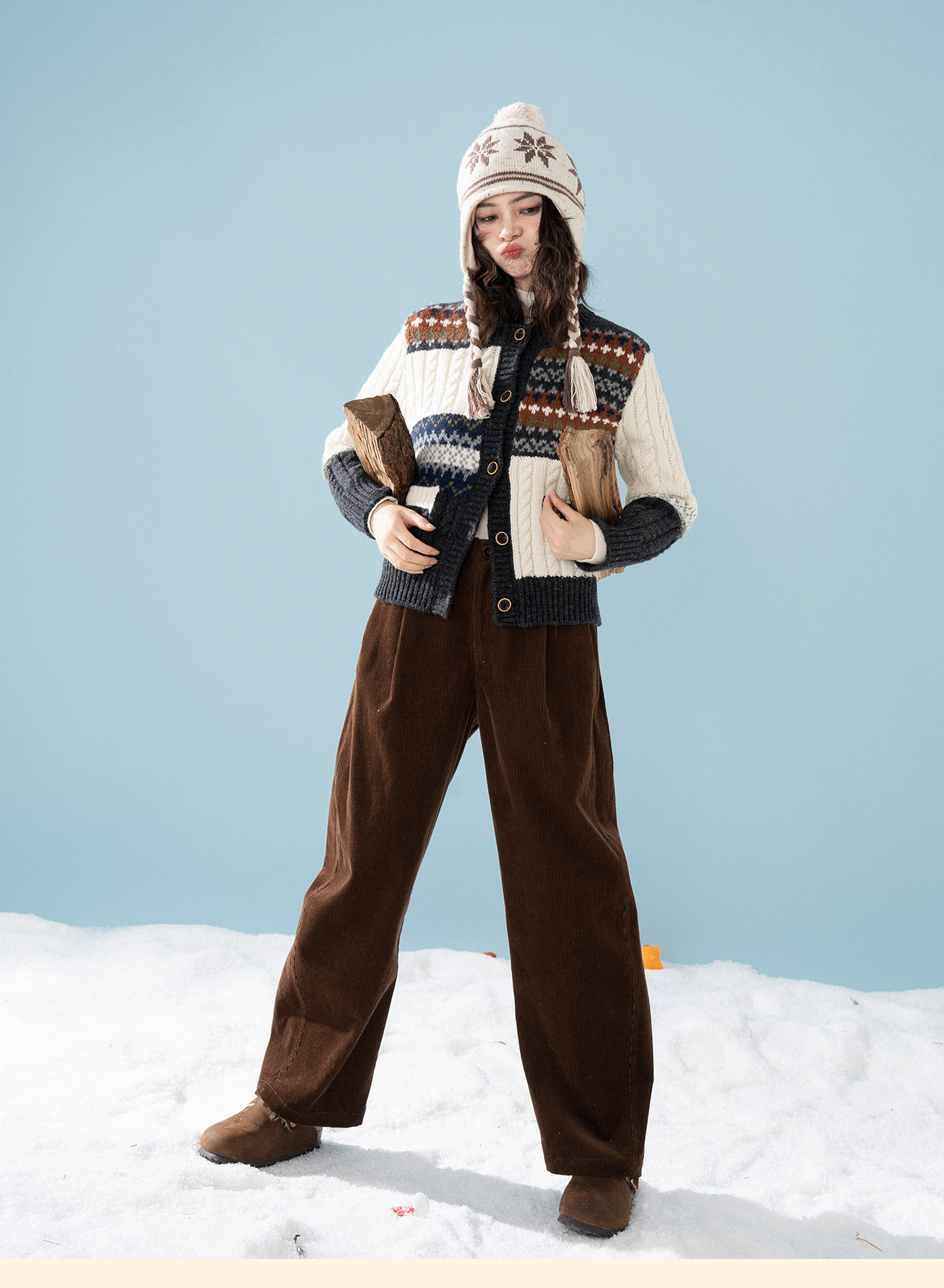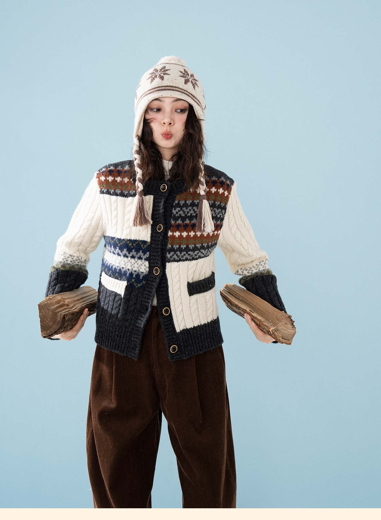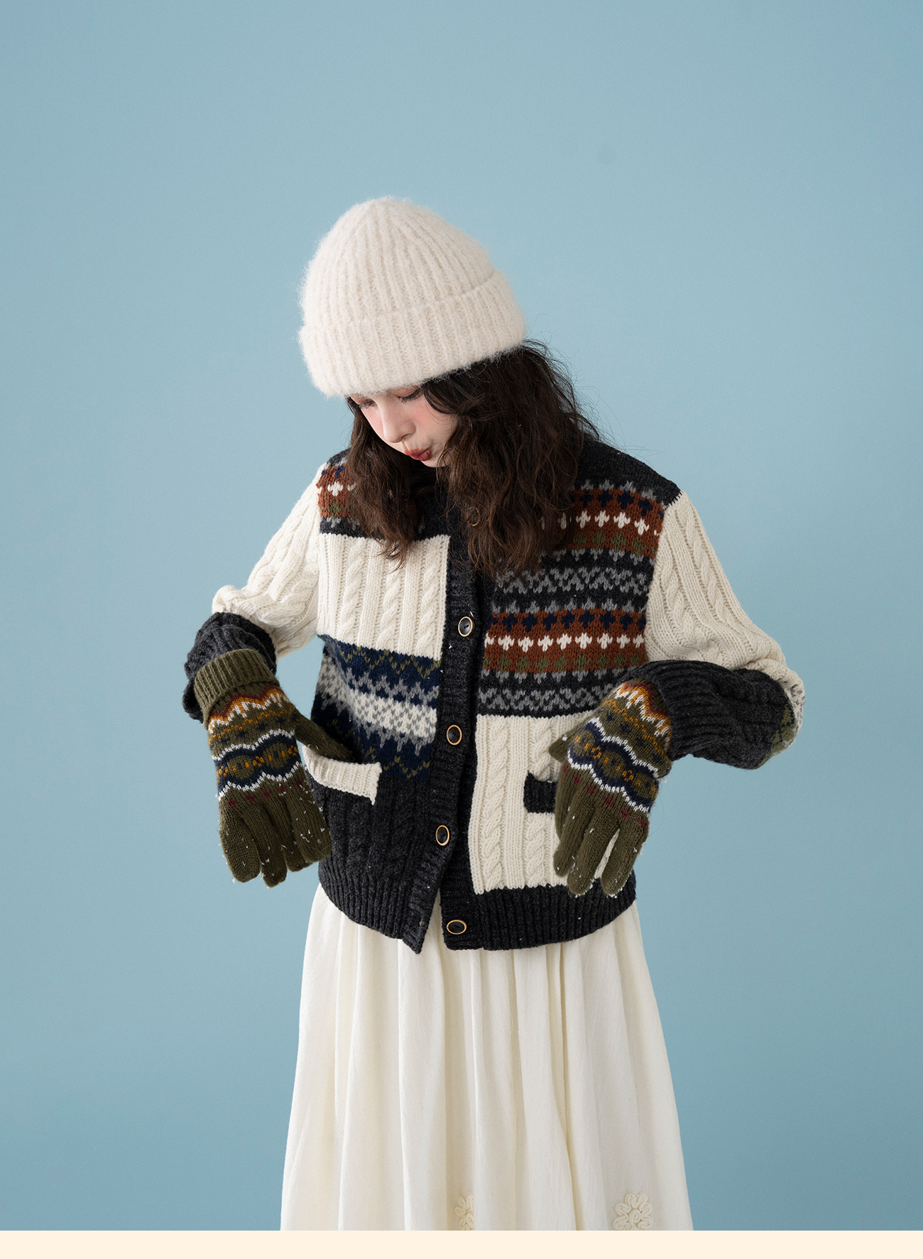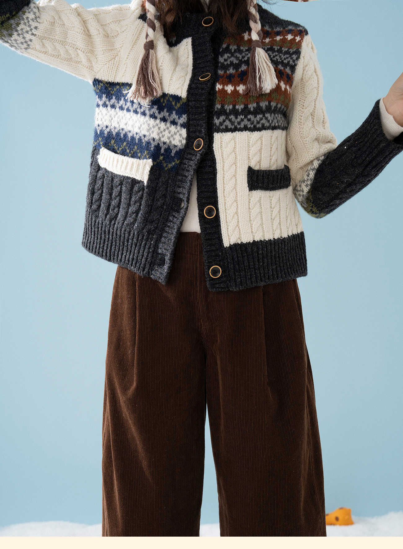 浮生八记/25D238/25D220/全羊毛不规则费尔岛手工毛衣开衫马甲