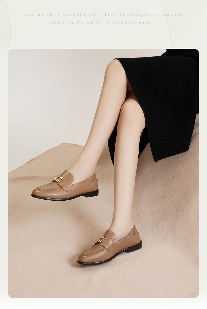 natursun乐福鞋女秋季一脚蹬女鞋不累脚软底羊皮平底单鞋N24109985