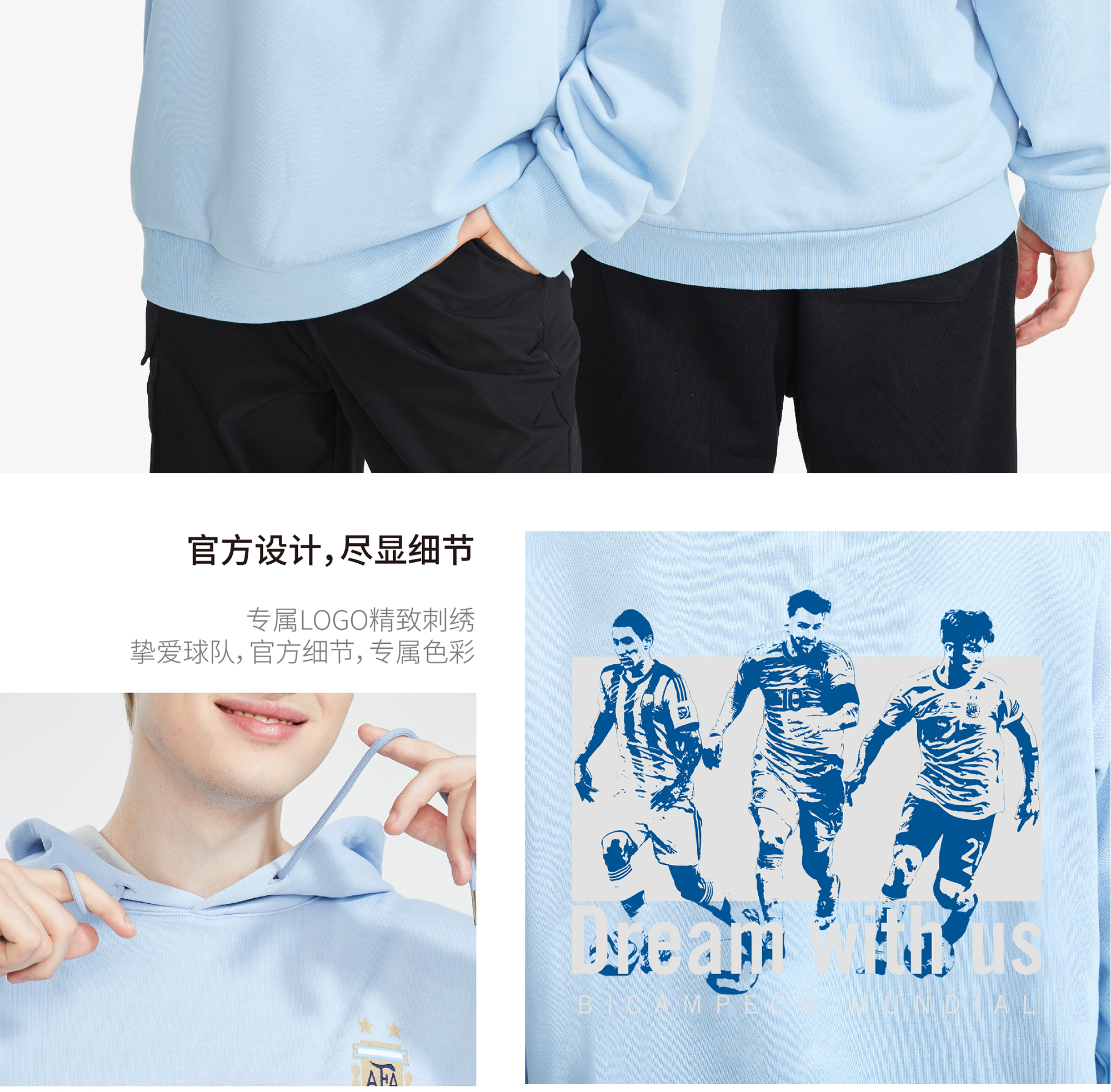 【官方正版】阿根廷国家队|梅西迪巴拉迪马利亚卫衣2022世界杯