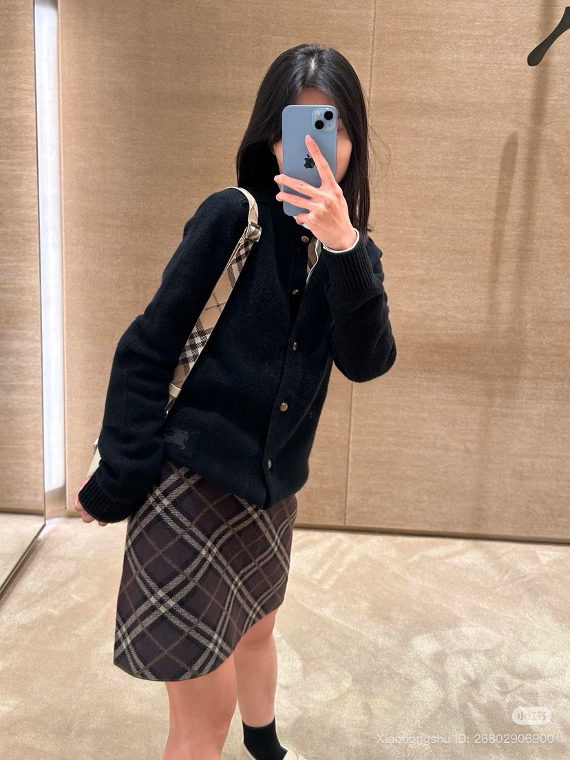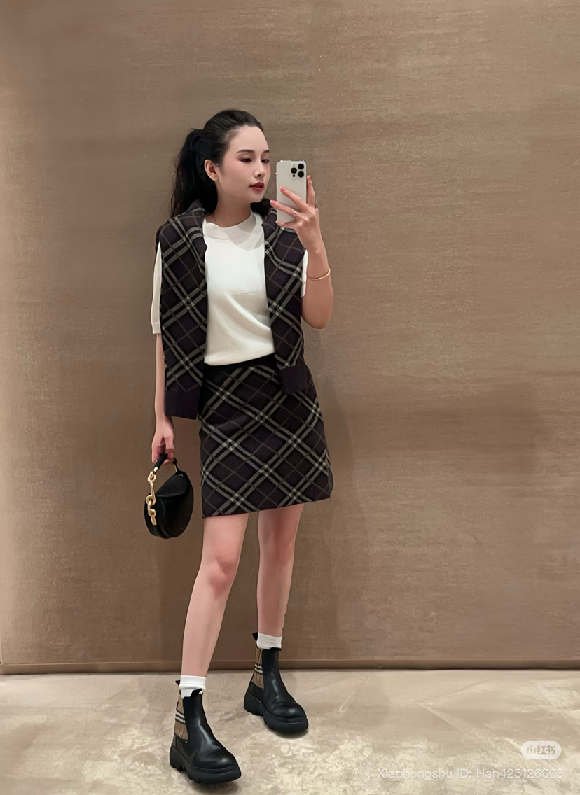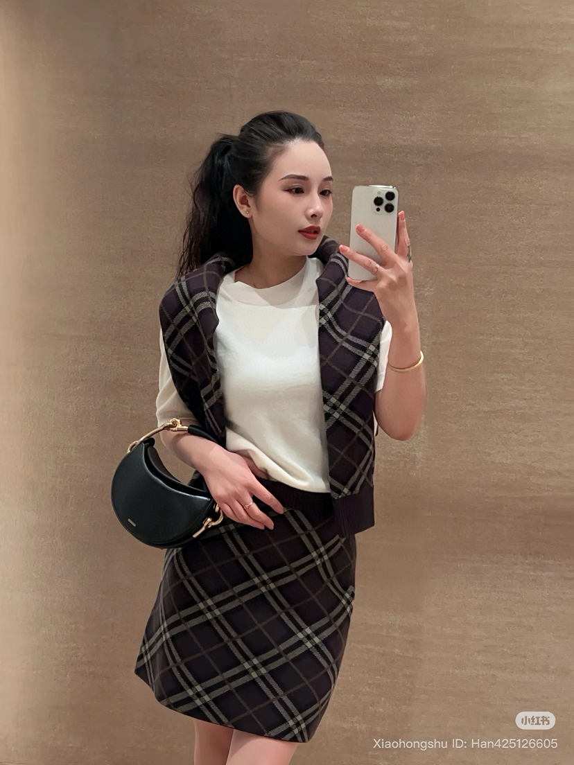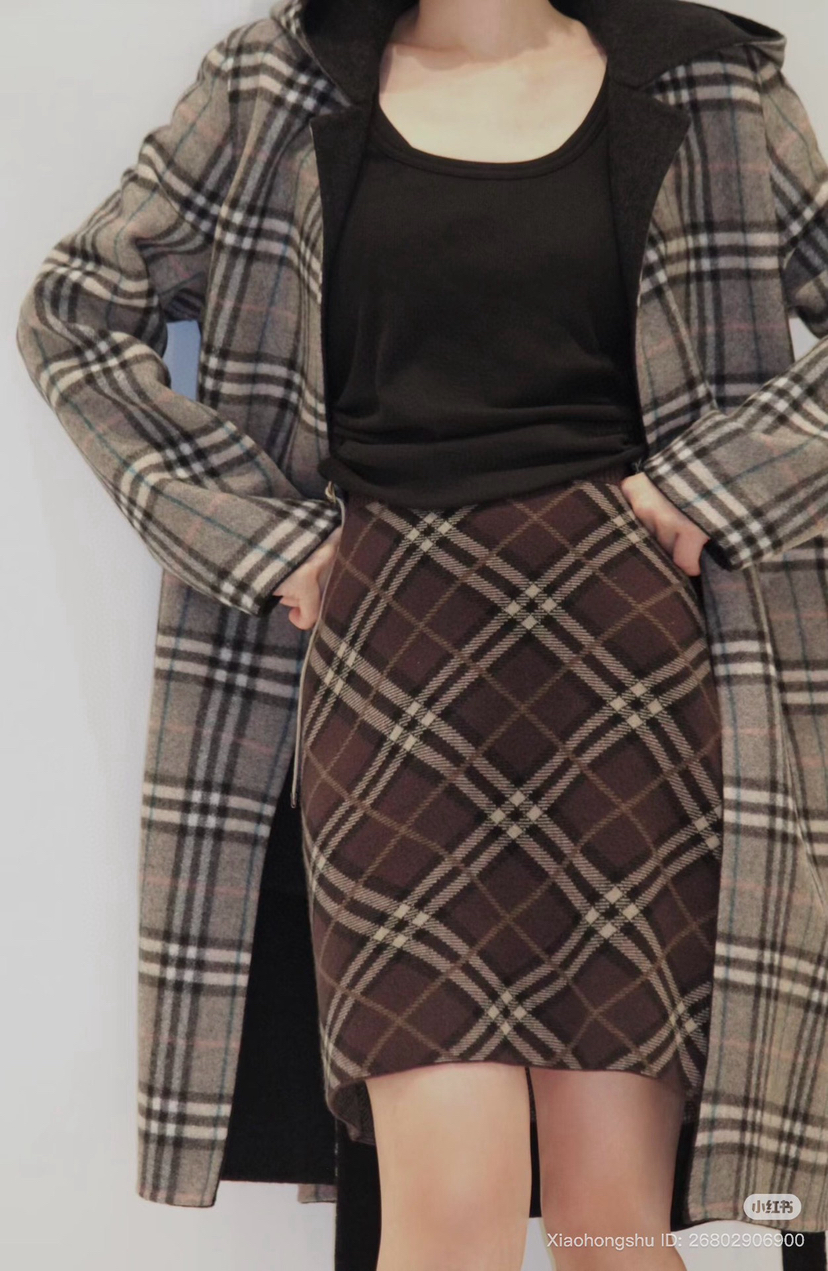 112-6 渠道圆正 BB新款 格纹针织半裙 弹力大 我穿L