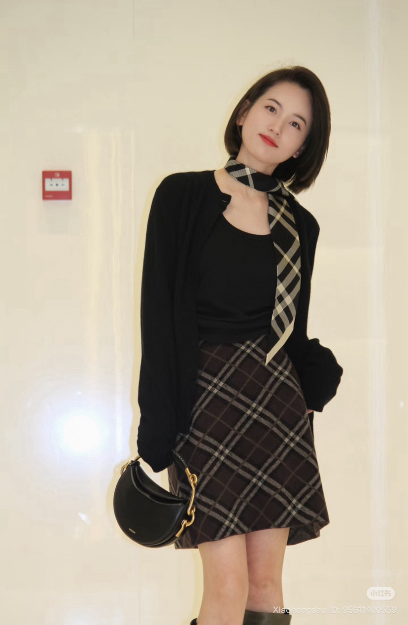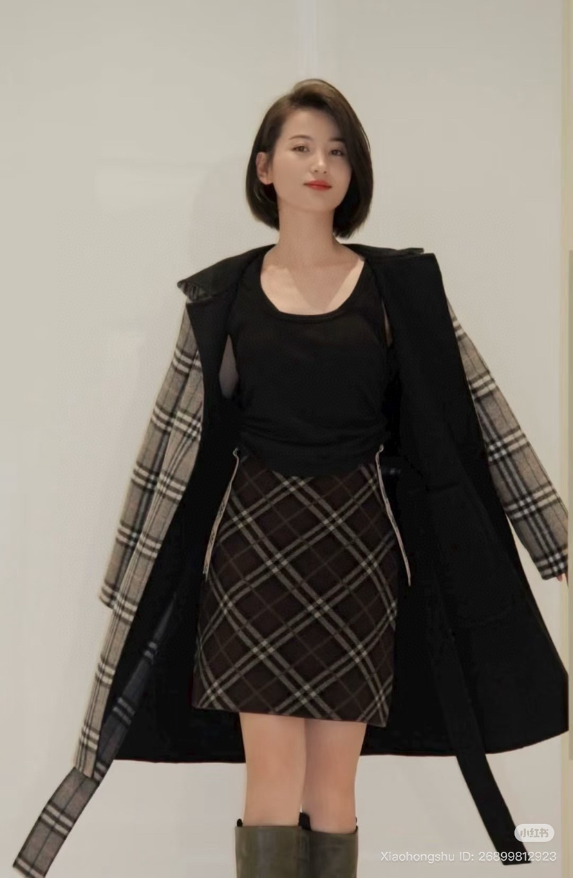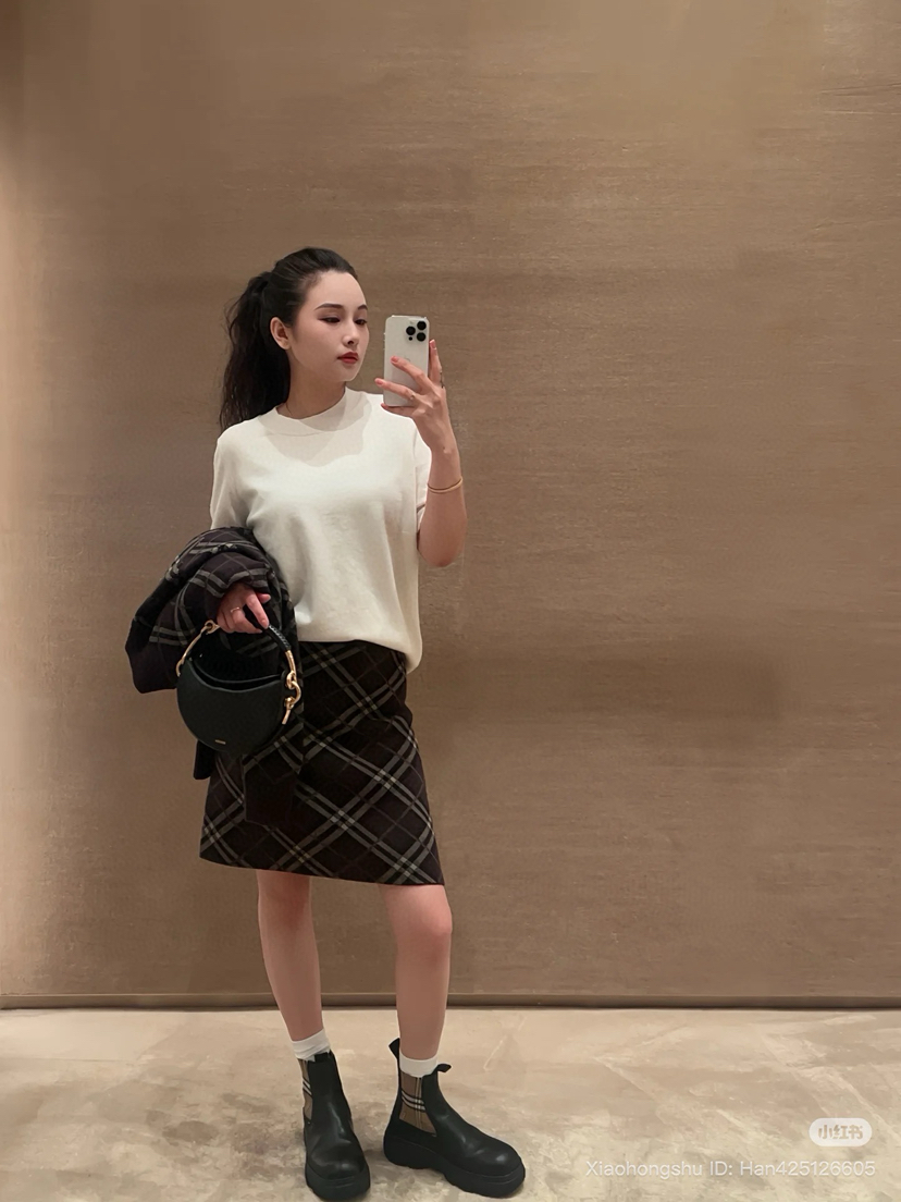 112-6 渠道圆正 BB新款 格纹针织半裙 弹力大 我穿L
