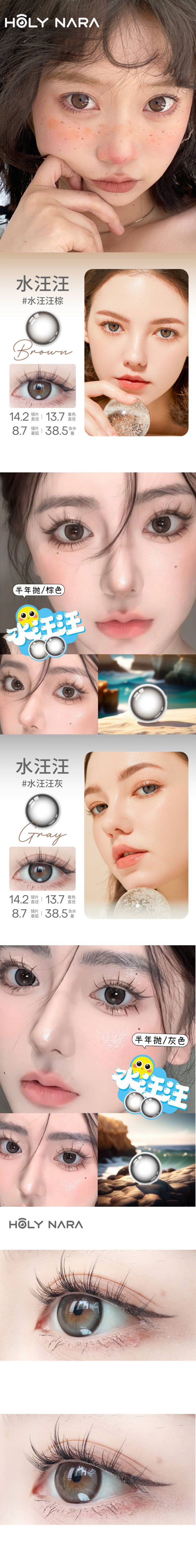 【半年抛】Holy Nara水汪汪 直径:14.2mm 含水38.5%(半年抛1片/盒 不同度数请拍两盒)