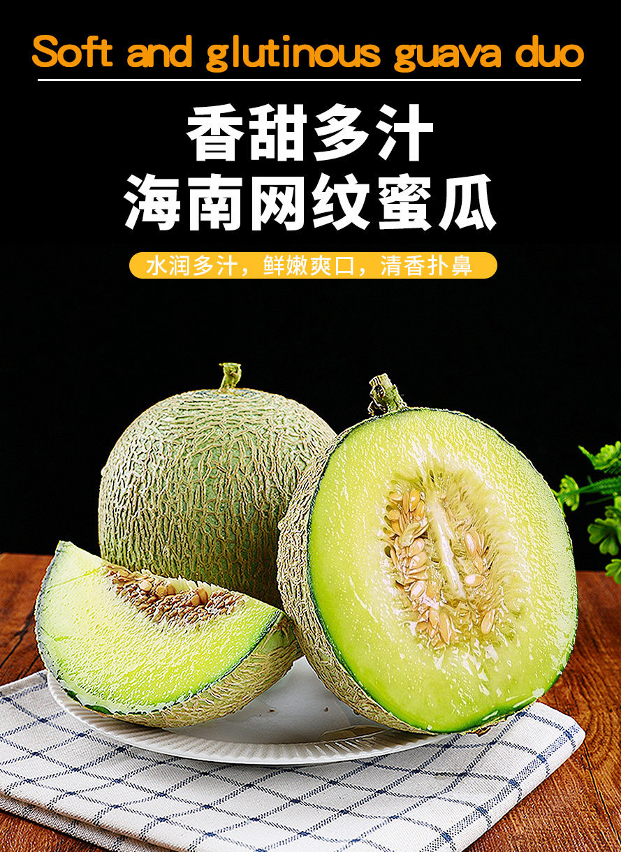 品名:冰淇淋网纹瓜规格: 包装方式:礼盒+网套 快递:京东 运费模板:黑龙江、辽宁、吉林、甘肃、宁夏、青海、内蒙、新疆、西藏、港澳台不发货 发货时效:48-72h 发货地/产地:海南 保质期:收到常温保存3-5天,冷藏保存5-7天 生产日期:现摘现发 销售售卖期:长期 周六周天、节假日除外,早上十点之前的订单是48小时发货 ,到货时间约为2-5天,请您耐心等待 。 |