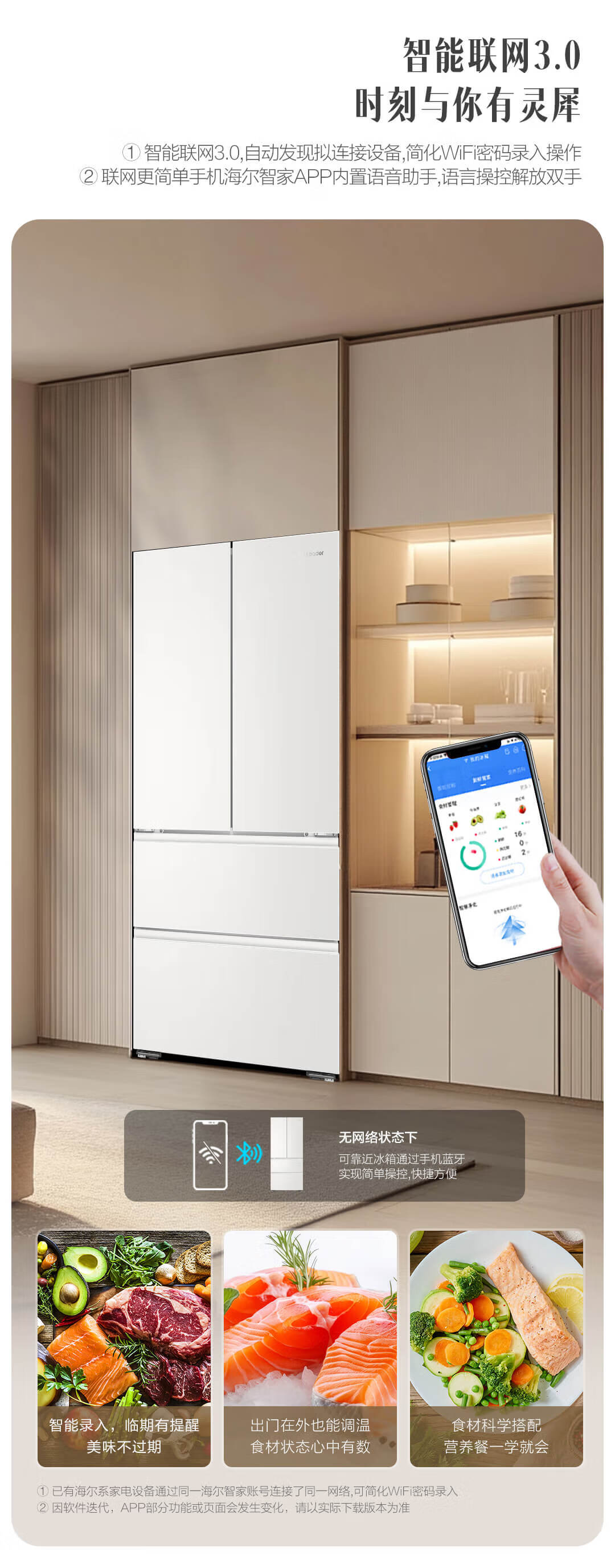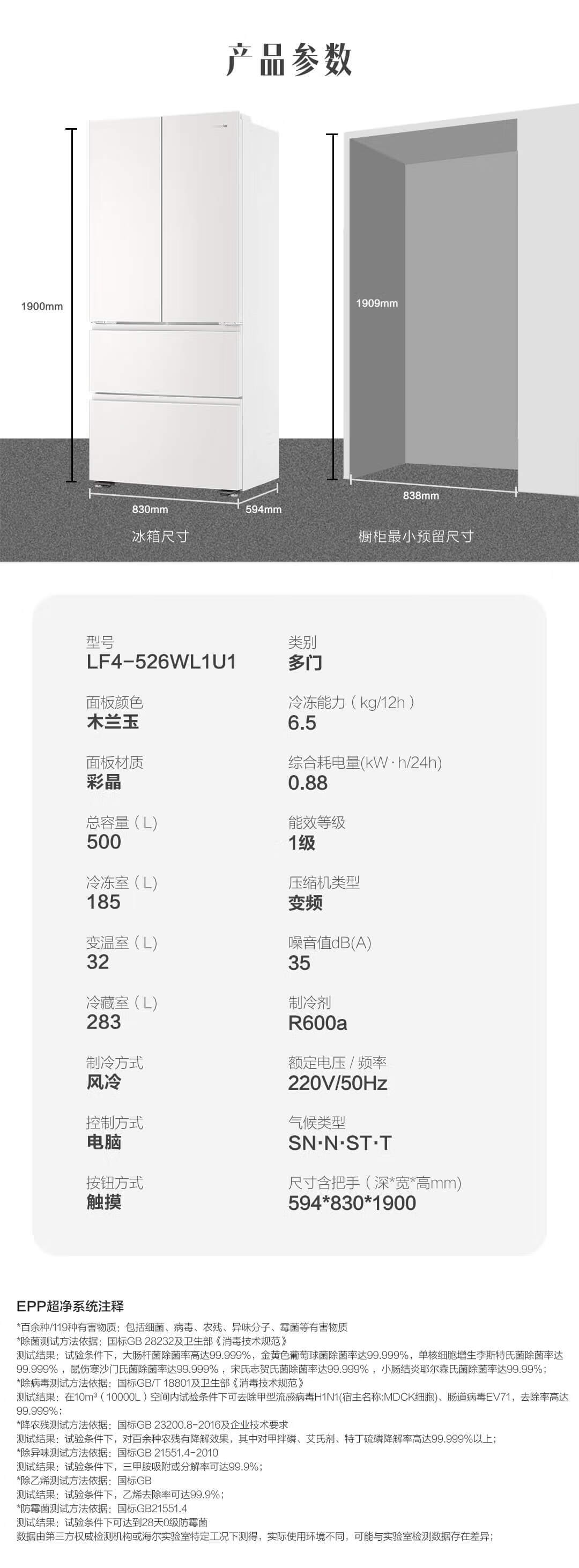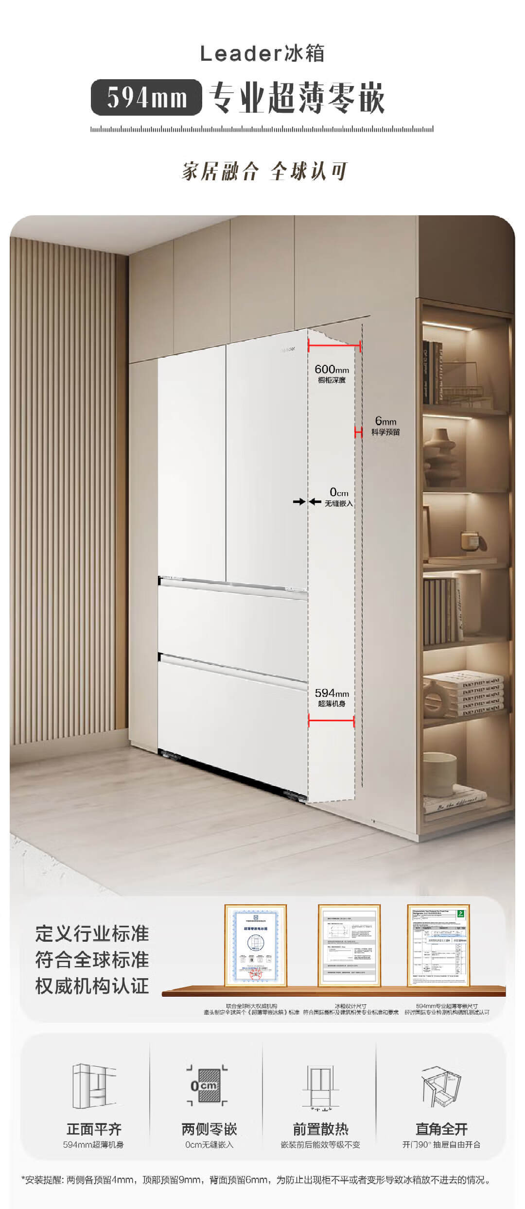 统帅(Leader)海尔智家出品500L法式四门多门594mm超薄零嵌入式家用一级能效电冰箱底部前置散热LF4-526WL1U1
