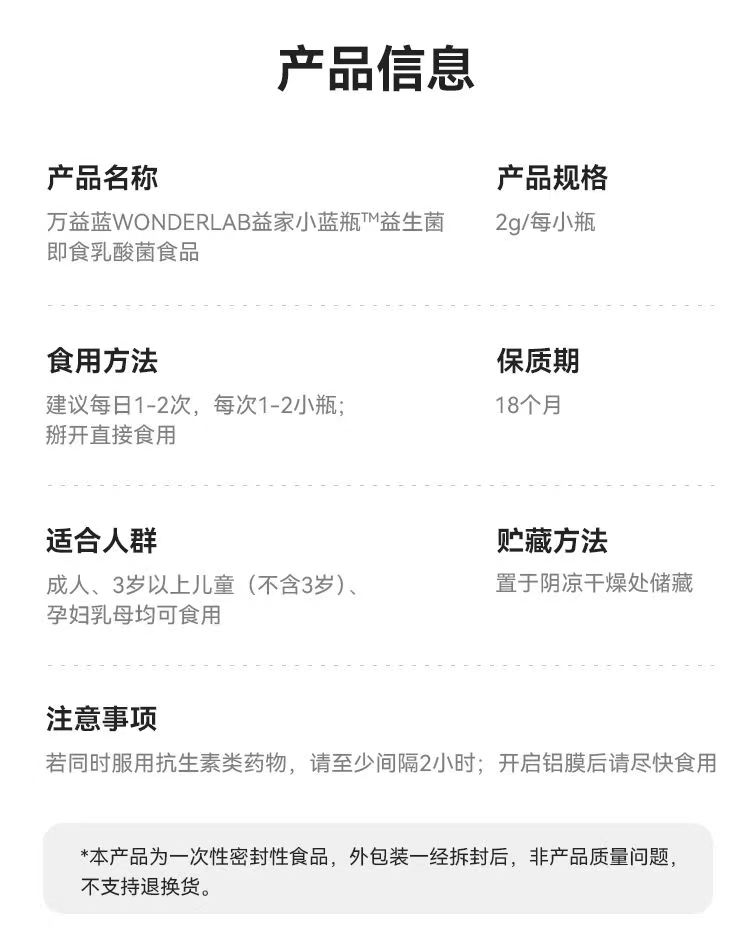 【赠3瓶】WonderLab万益蓝全能益生菌 2g*30瓶