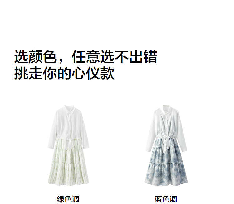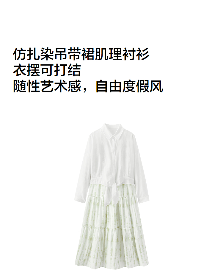 [商场同款]森马×蓝续联名款连衣裙女吊带裙衬衫2025夏新款两件套