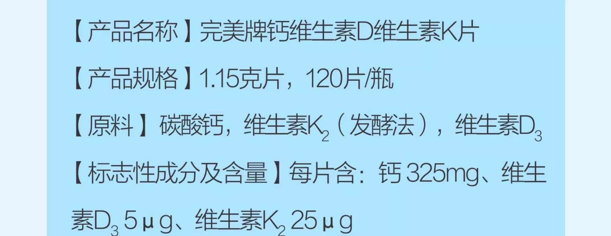 【预售 急单慎拍】完美牌钙维生素D维生素K片 1.15g/片,120片/瓶 原价178元