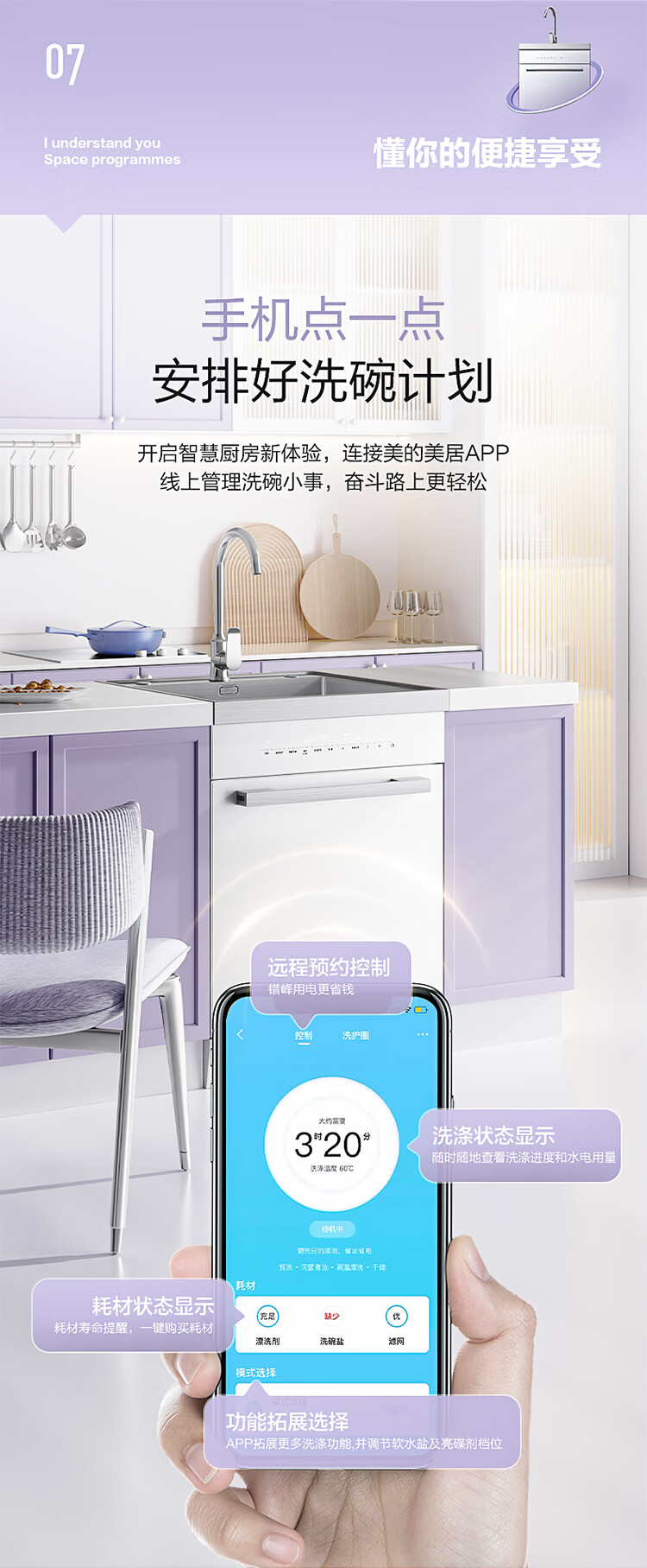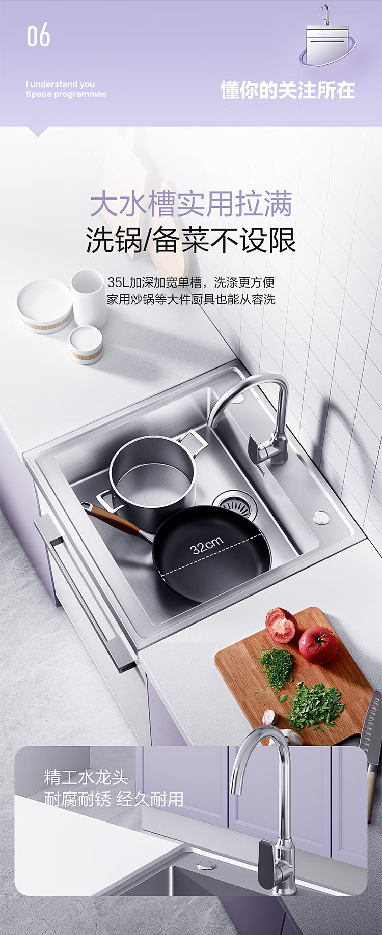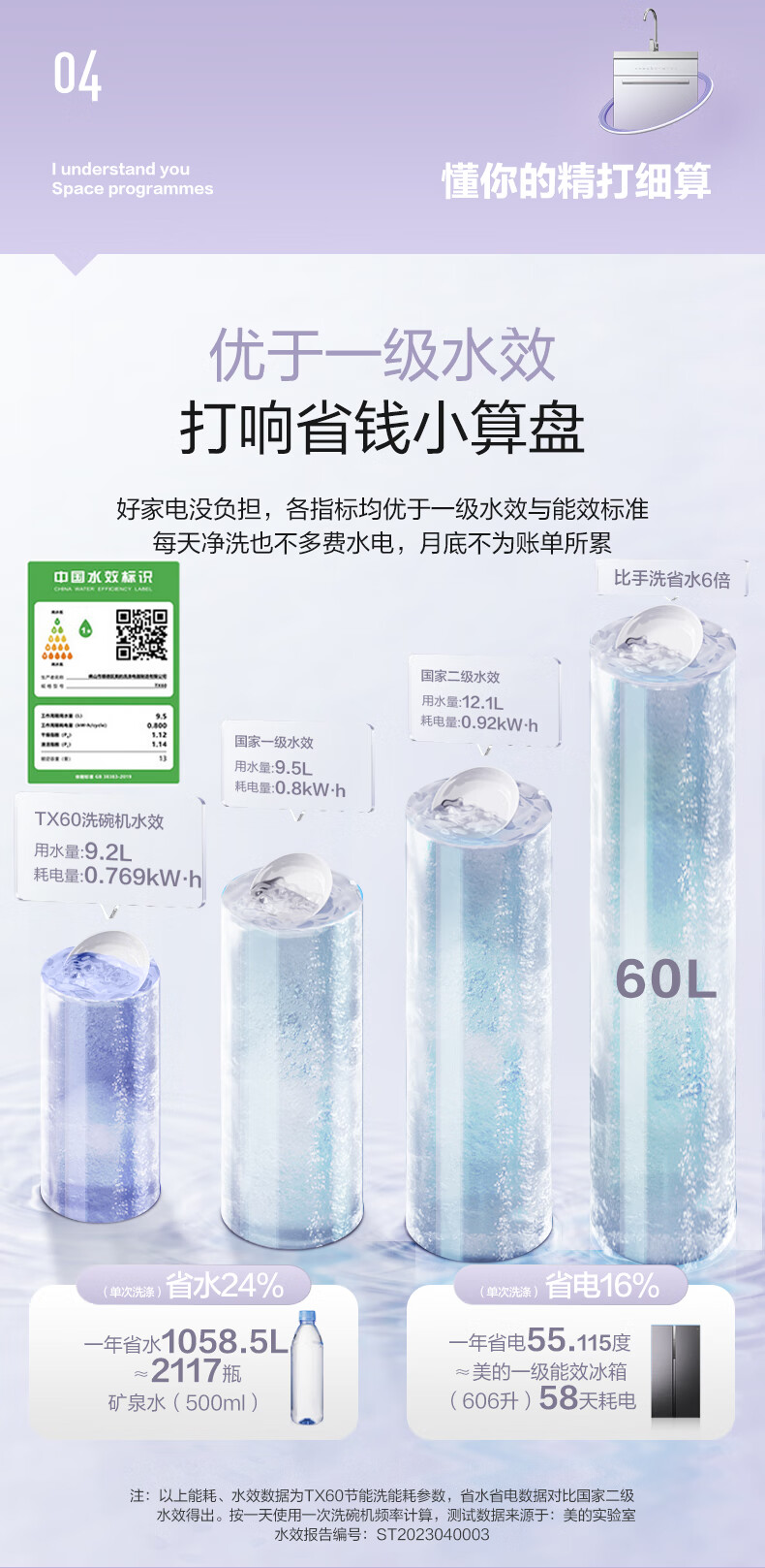 美的(Midea)集成水槽洗碗机TX60 一体式 大单槽 白色水槽洗碗机一体 洗碗机带洗菜盆一体机小尺寸 600宽*830高*深600