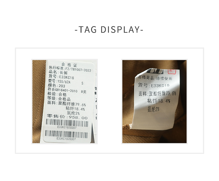 佐尔美春季新款 百搭经典样式休闲裤长裤女E33KC18