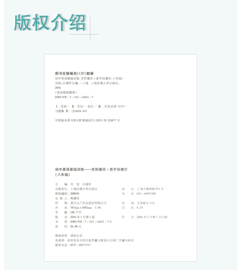 初中英语星级训练 完形填空+首字母填空 8年级/八年级 上下册 第一学期 第二学期 英语