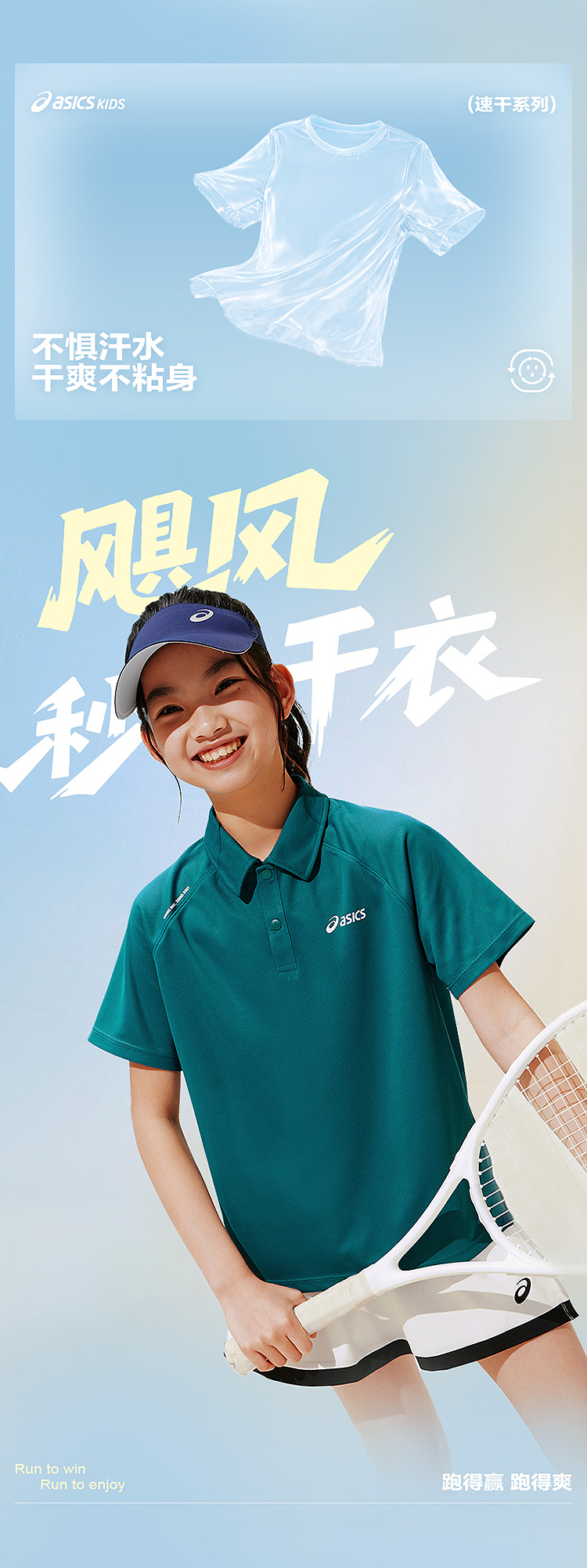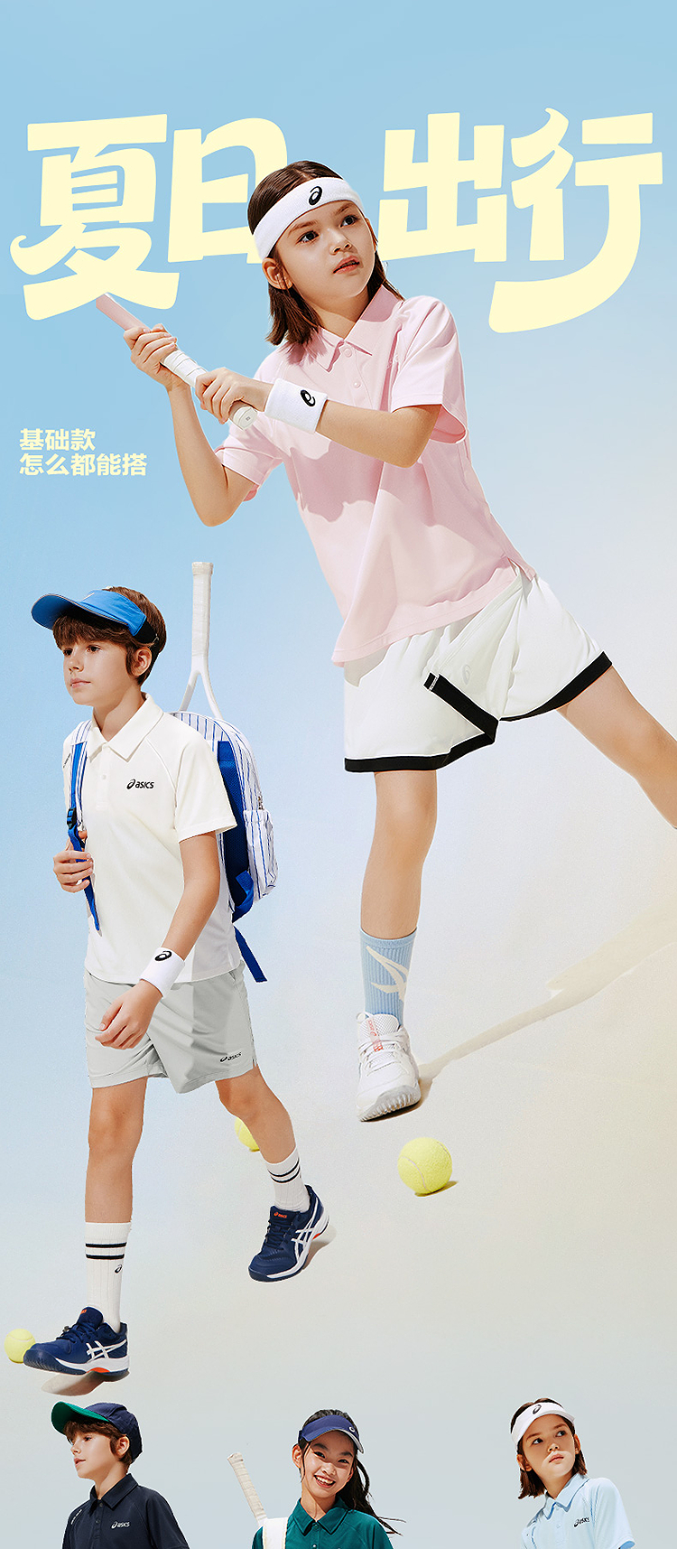ASICS/亚瑟士儿童26年夏季吸湿速干POLO领舒适运动弹力针织短袖