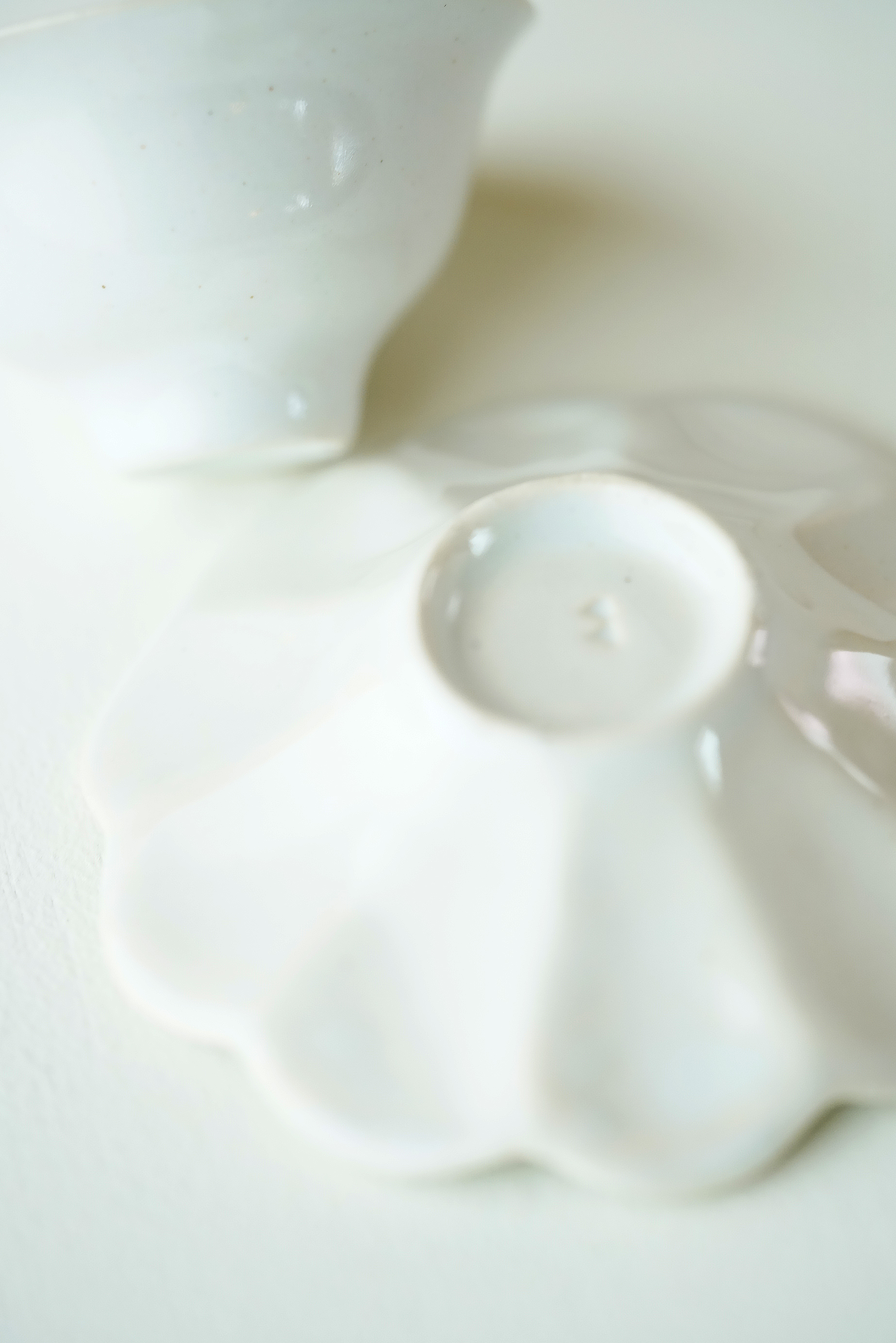 青白亮釉细反茶杯+青白釉十瓣瓣茶托(套组)
