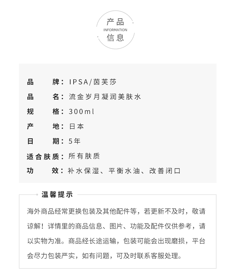 IPSA茵芙莎流金水300ml夏季水油平衡爽肤水保湿滋润化妆水补水