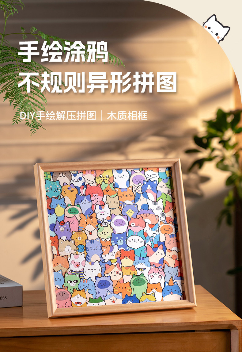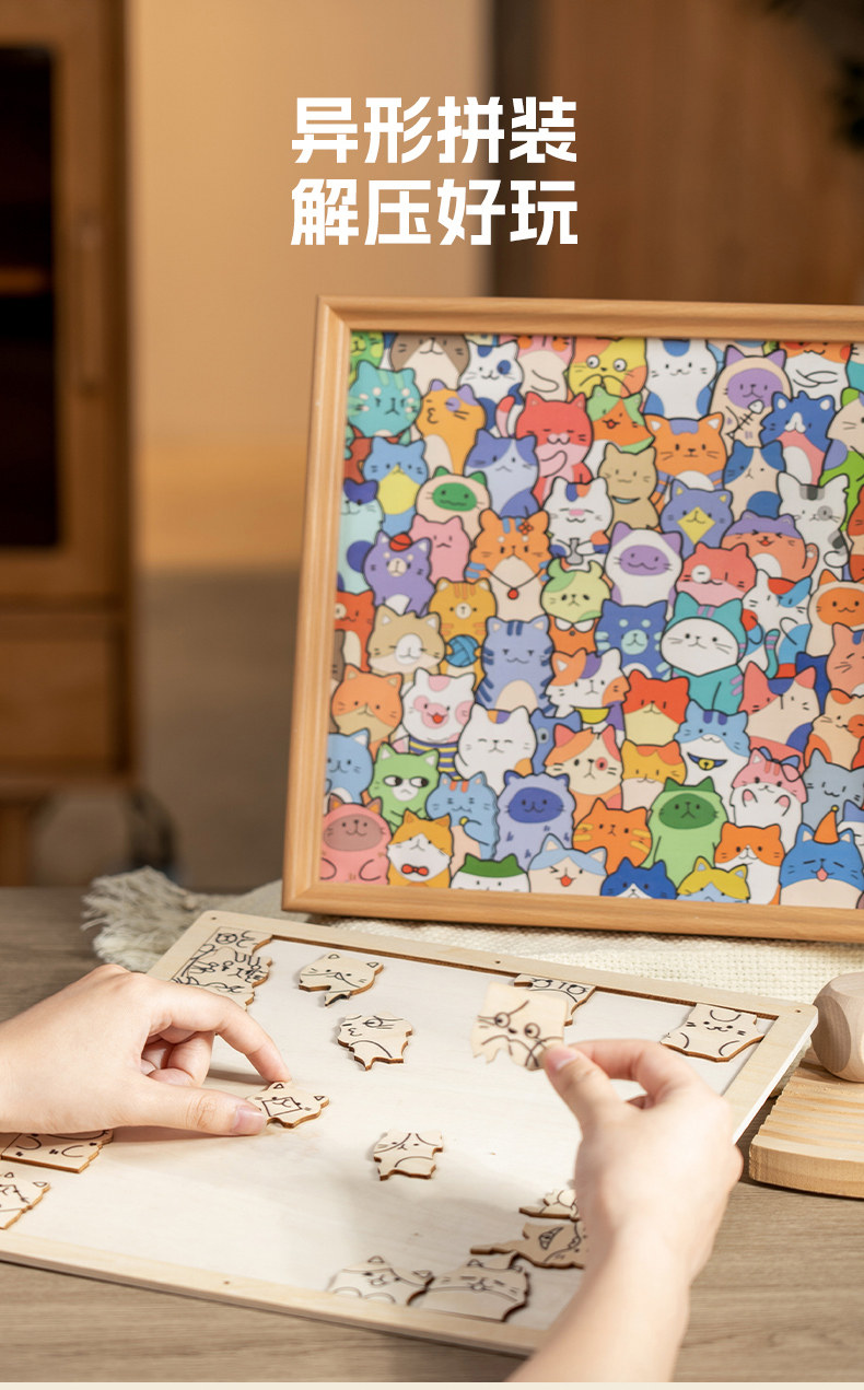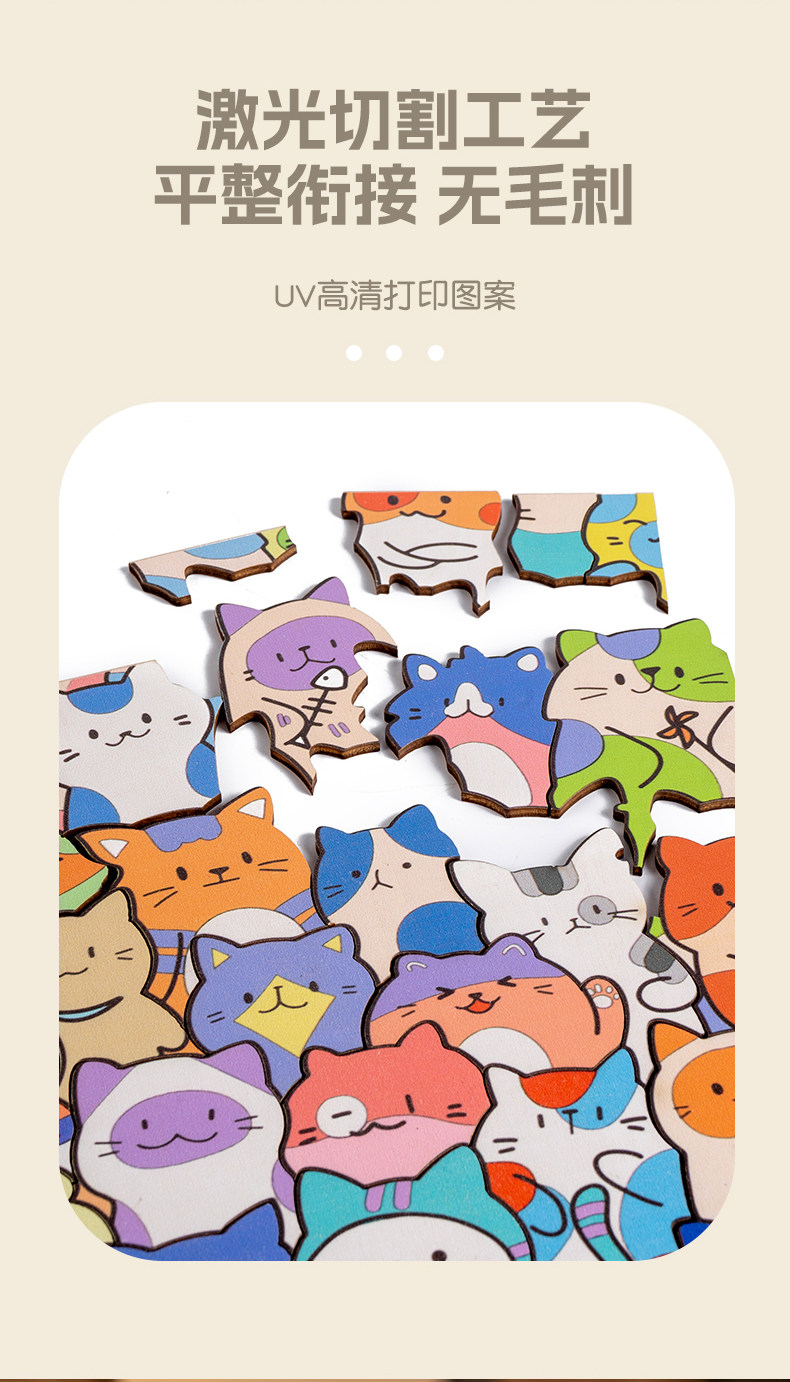 小猫猫咪木质diy拼图手绘涂色手工相框摆件儿童卡通异形拼图玩具