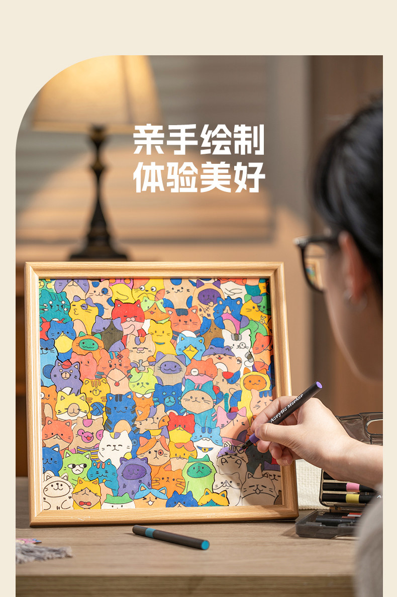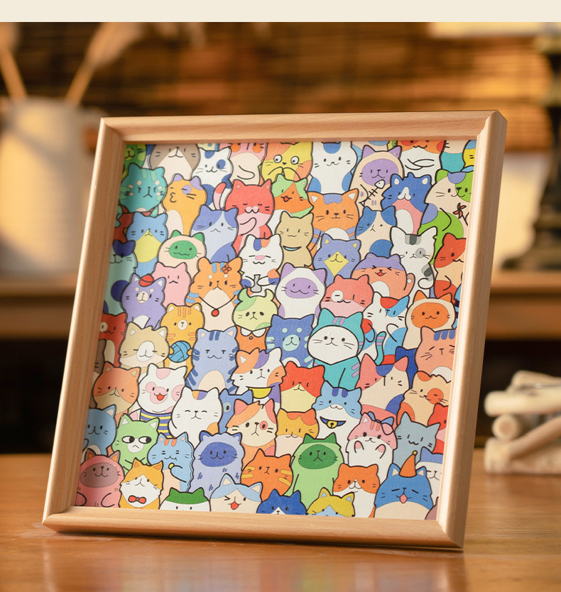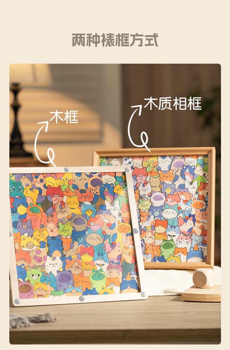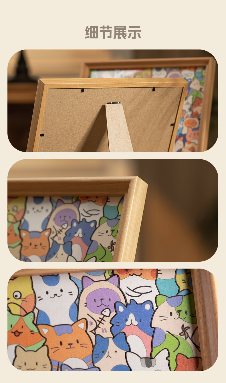 小猫猫咪木质diy拼图手绘涂色手工相框摆件儿童卡通异形拼图玩具
