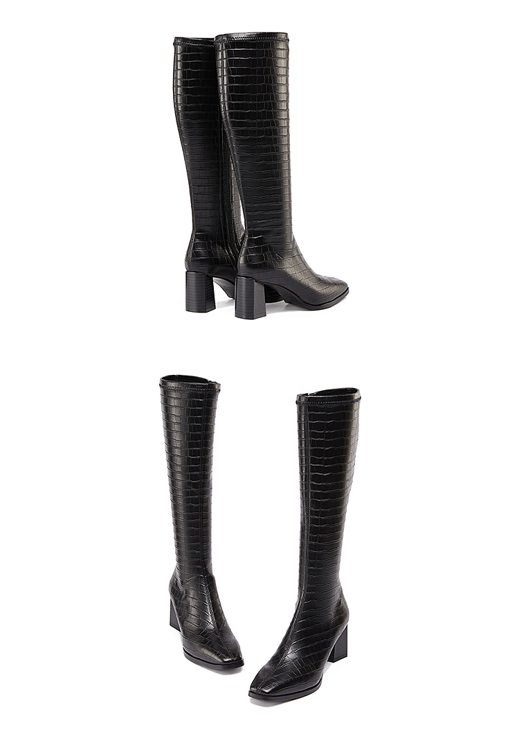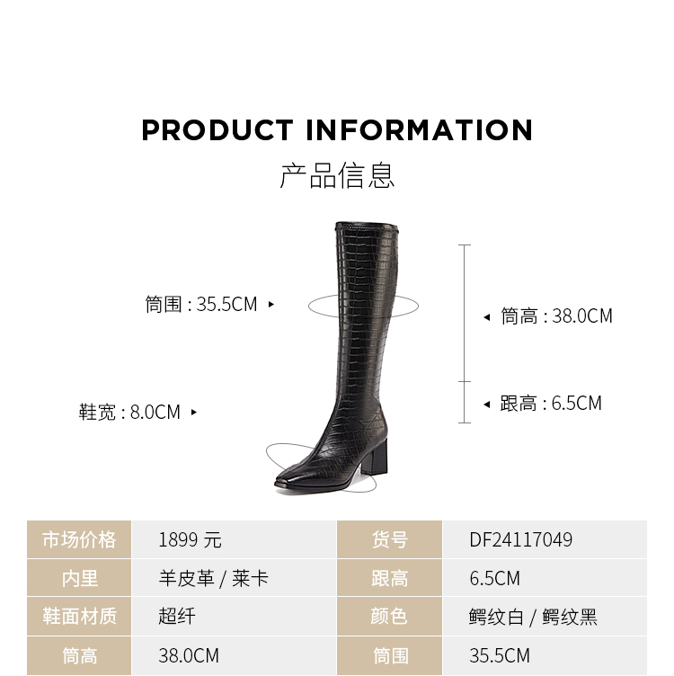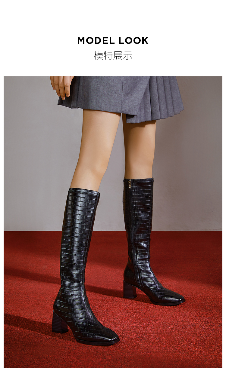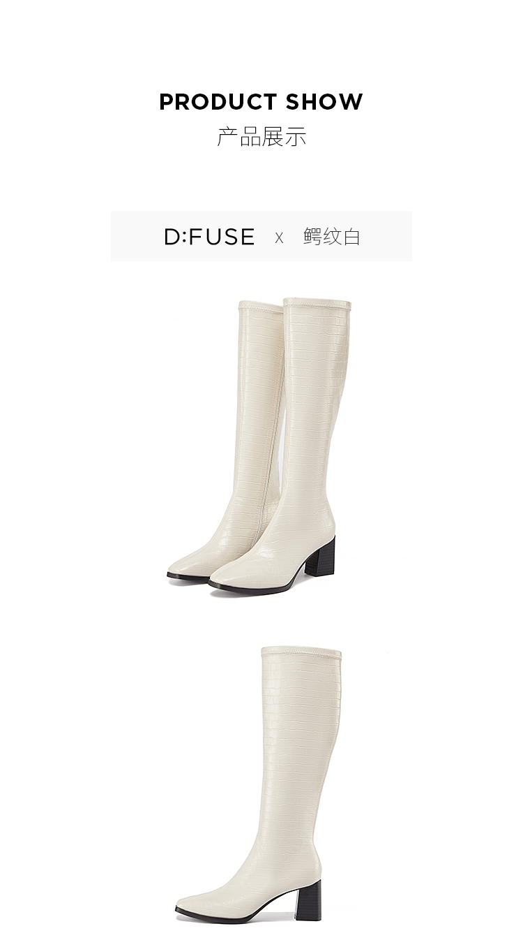 Dfuse迪芙斯冬季新款百搭弹力及膝高靴瘦瘦靴高跟长靴DF34117049