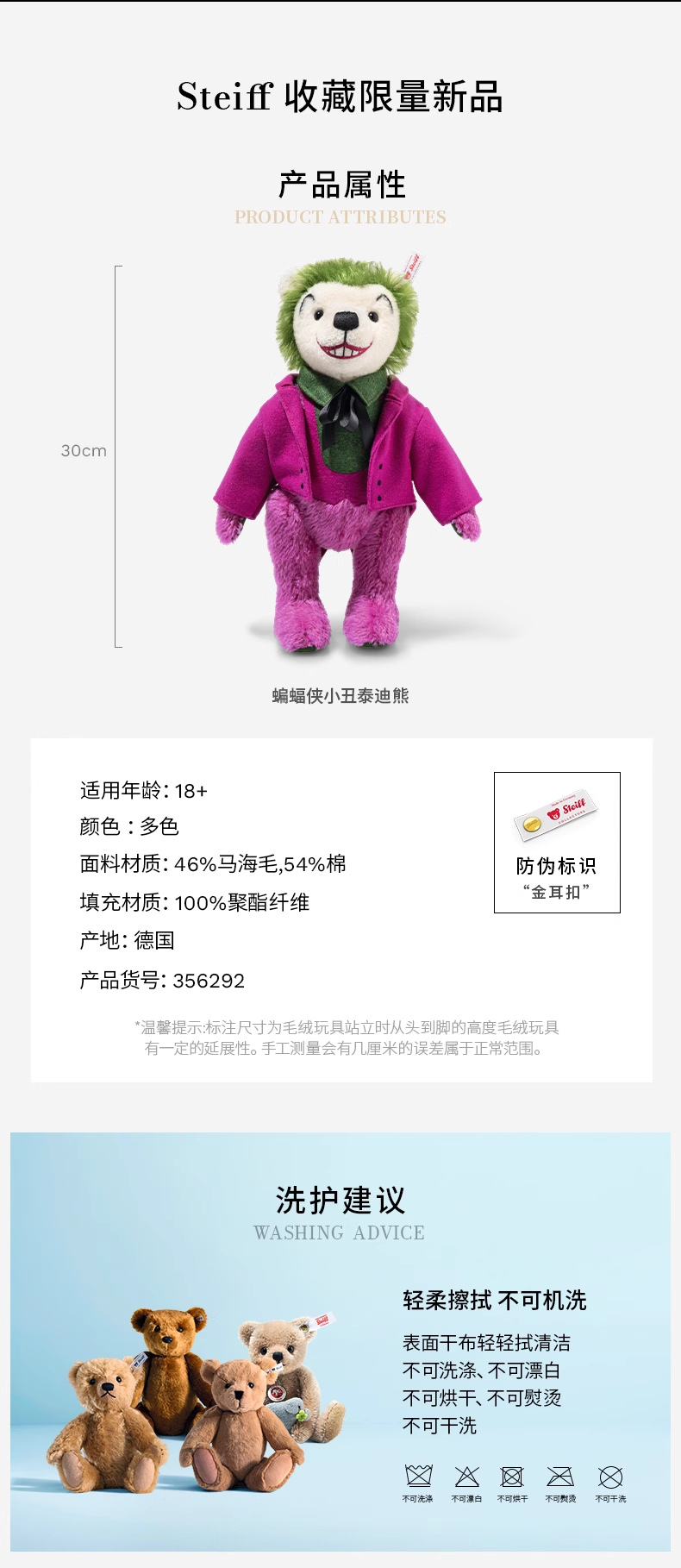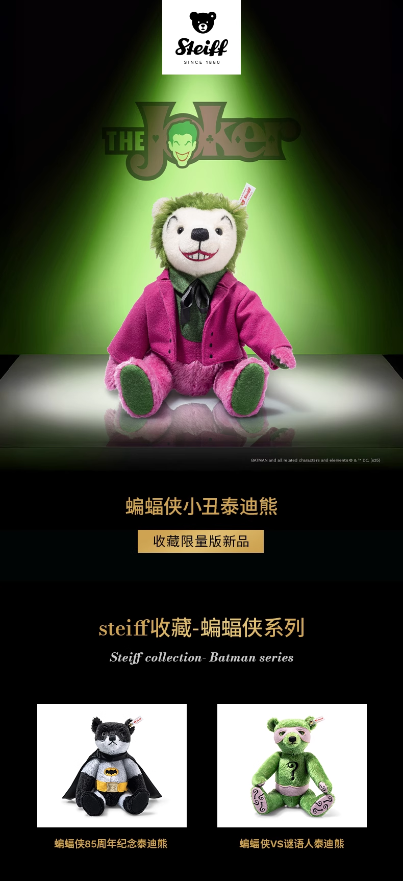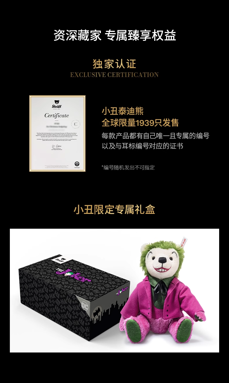 史戴芙收藏限量版-蝙蝠侠,⼩丑泰迪熊(30厘⽶)STEC356292