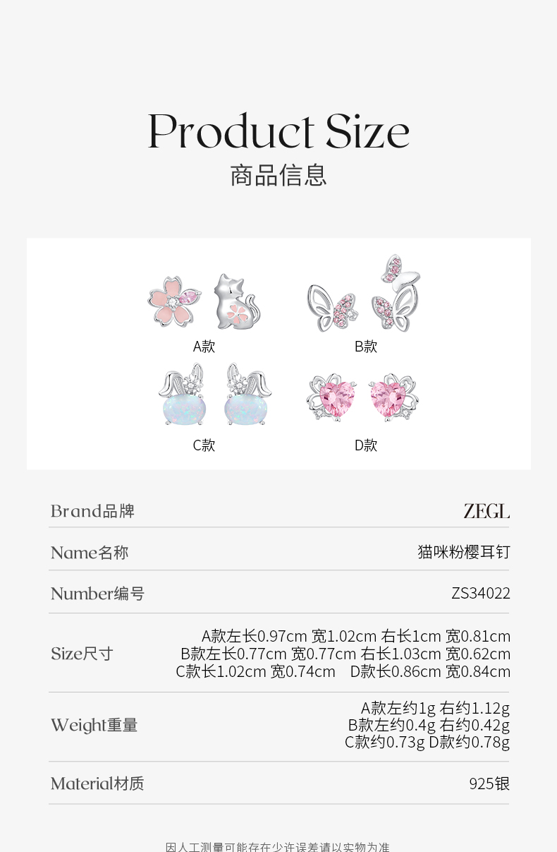 ZEGL设计师春季耳钉蛋925纯银耳钉女养耳洞蝴蝶兔子耳环小众耳饰