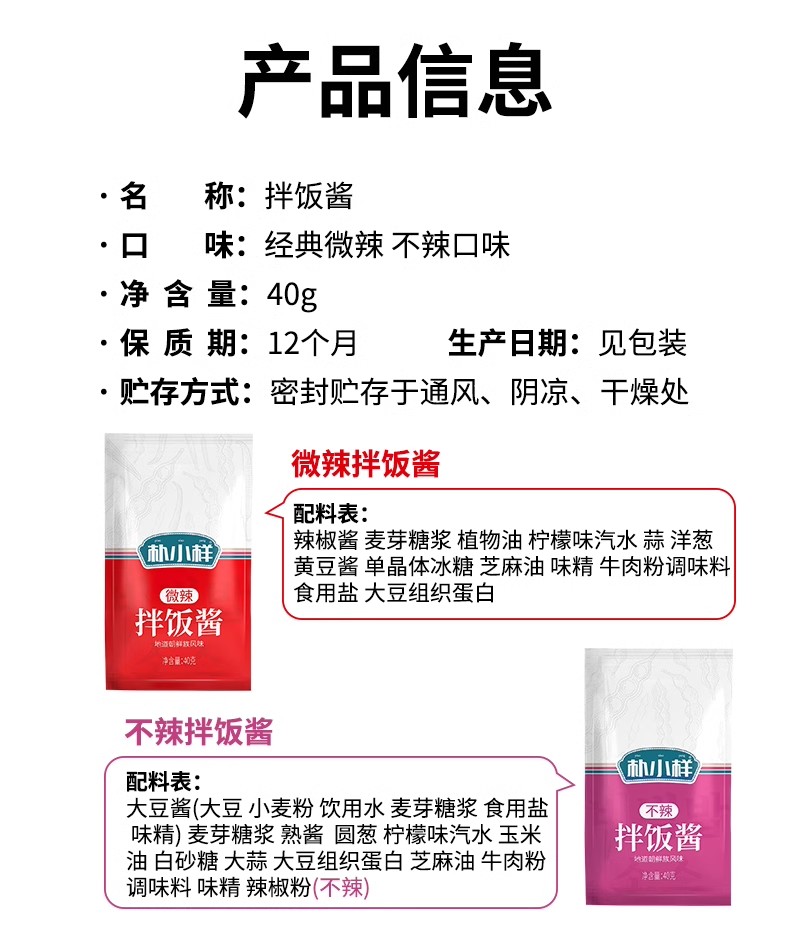 40g 朴小样 拌饭酱 不辣/微辣两种口味可选 地道朝鲜族风味石锅拌饭酱