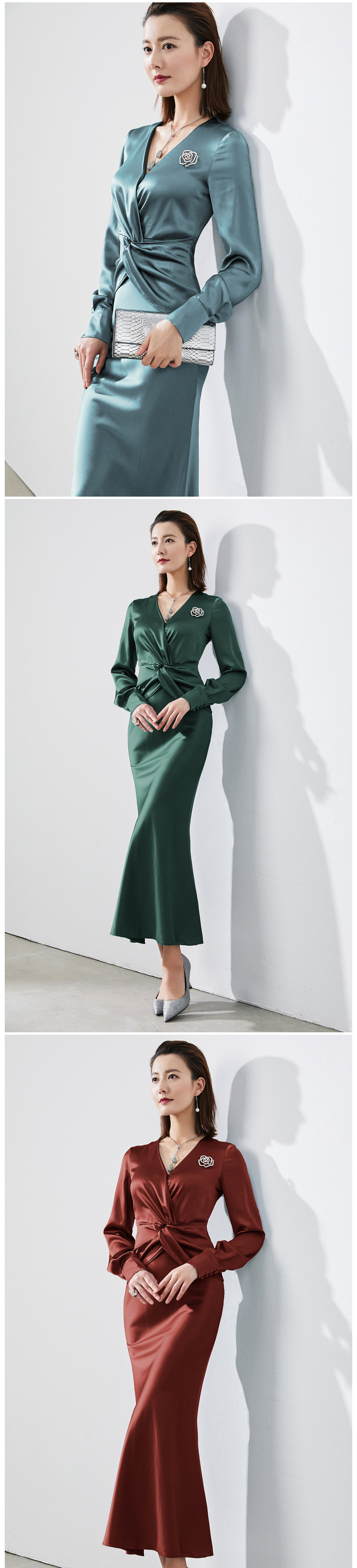 我们的产品:全网最具“质价比”的精英女装,只为有场合的“三高”女性打造,高知,高姿,高资。