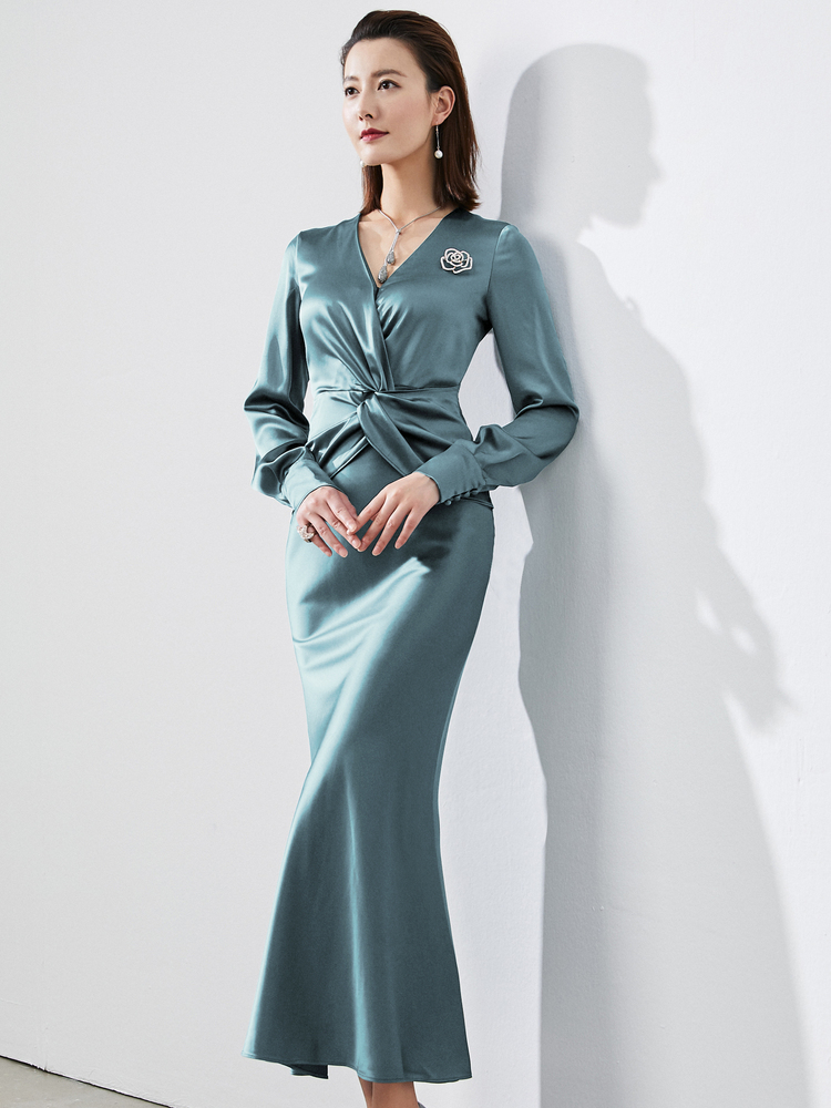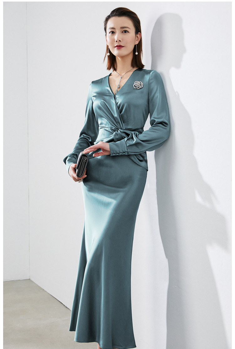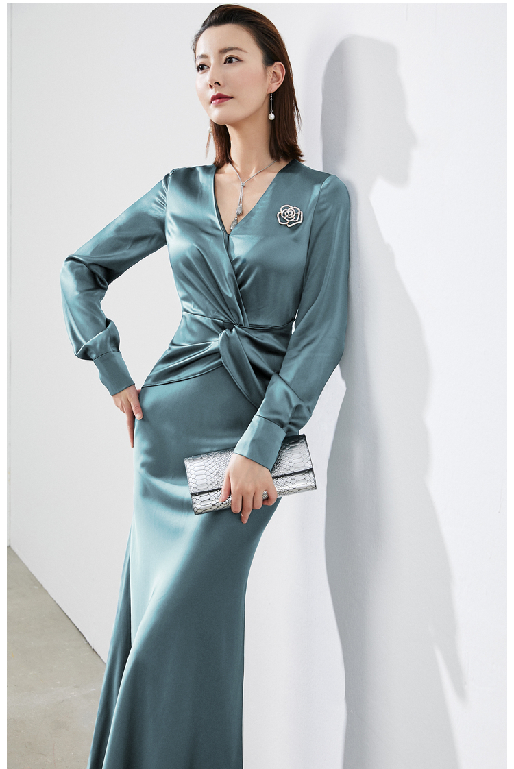 孤品 “维纳斯”颈袖添香-连衣裙-4169 华丽 仪式感 优雅高贵 醋酸缎面 光泽感不退可换