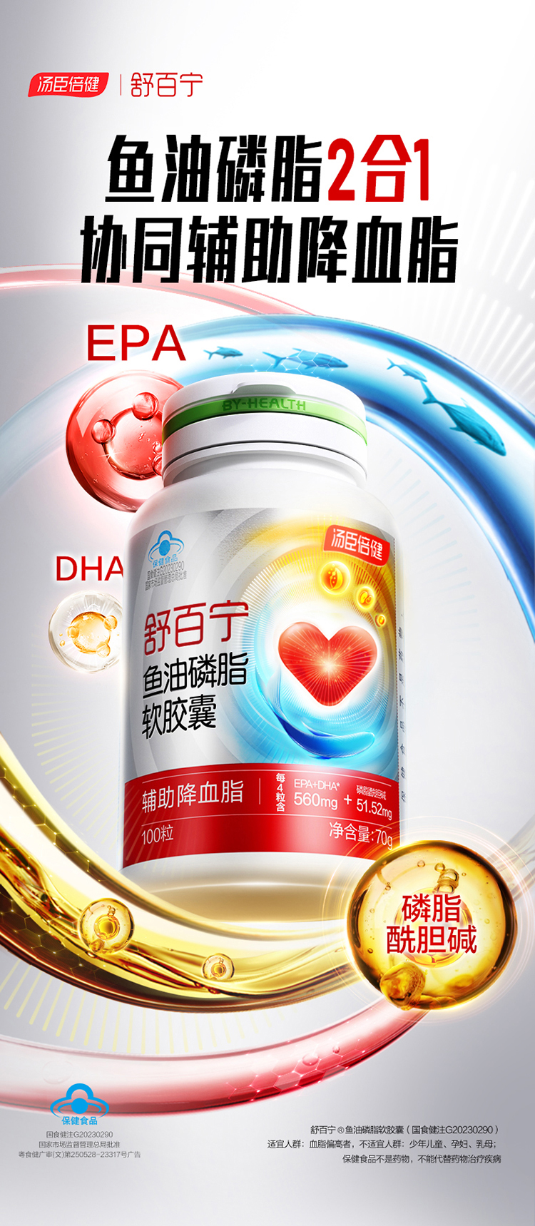 汤臣倍健舒百宁鱼油磷脂软胶囊鱼油磷脂2合1辅助降血脂 100粒/瓶 商品图4